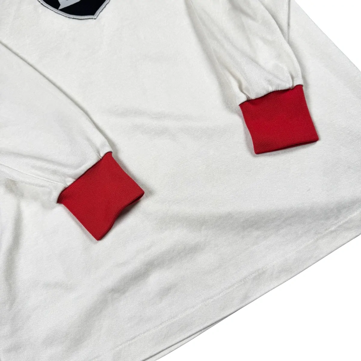 Note IFS : 9/10 – Maillot de Hambourg 1980 en manches longues, logo Erima un peu effacé, normal pour cette période où la marque produisait directement sous Adidas, qui l’avait rachetée à la fin des années 70. Résultat : il existe deux versions authentiques qui circulent pour ces saisons-là, l’Adidas utilisée en match et la variante Erima souvent destinée aux boutiques ou aux stocks alternatifs du club. Sponsor et écusson brodés, tissu d’époque, et surtout la pièce la plus ancienne du shop aujourd’hui. Une dinguerie absolue pour ceux qui aiment les vraies reliques du foot allemand.