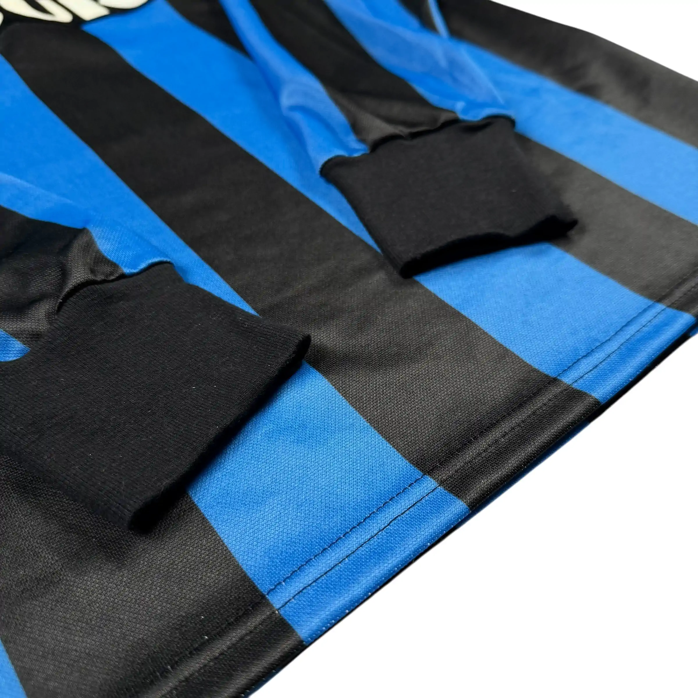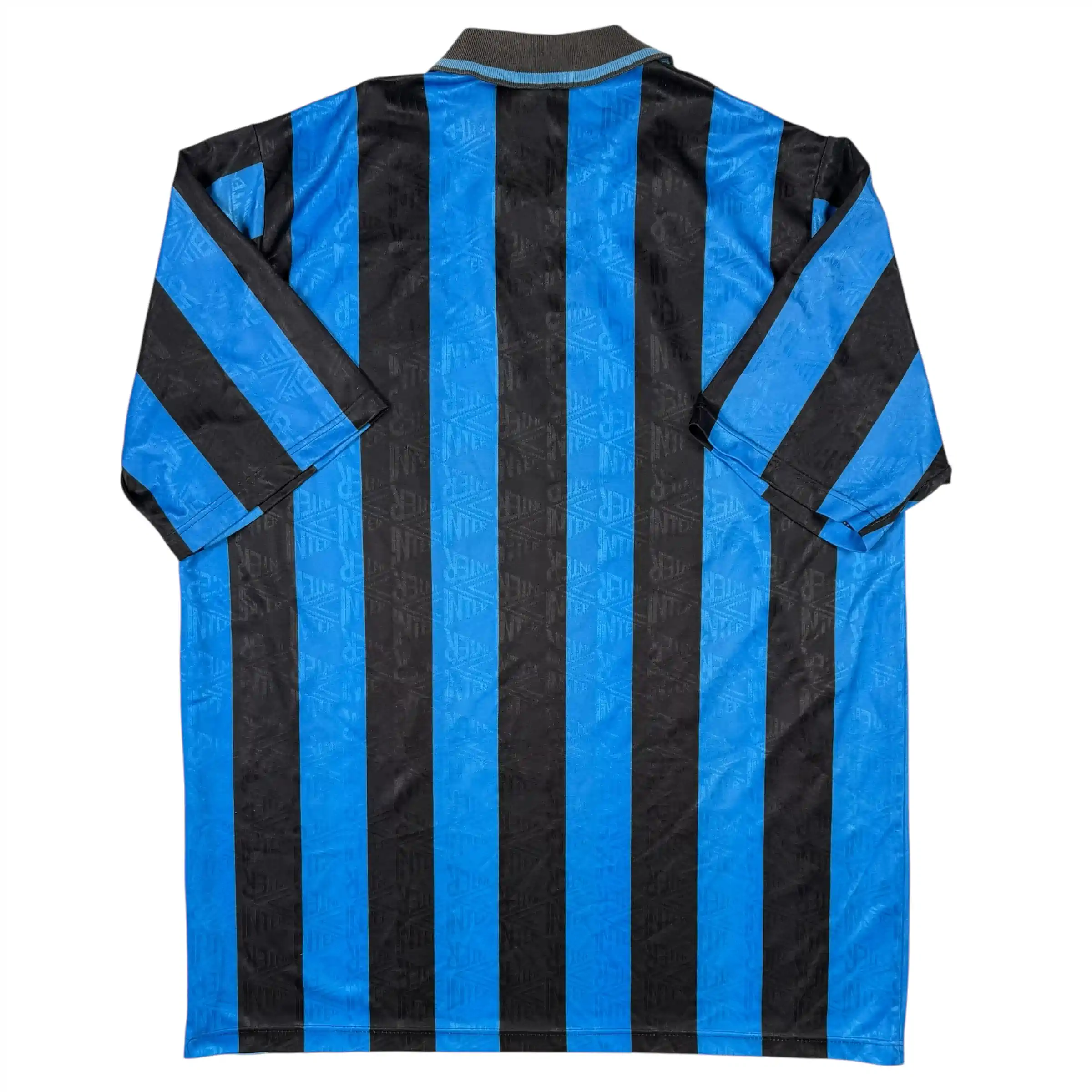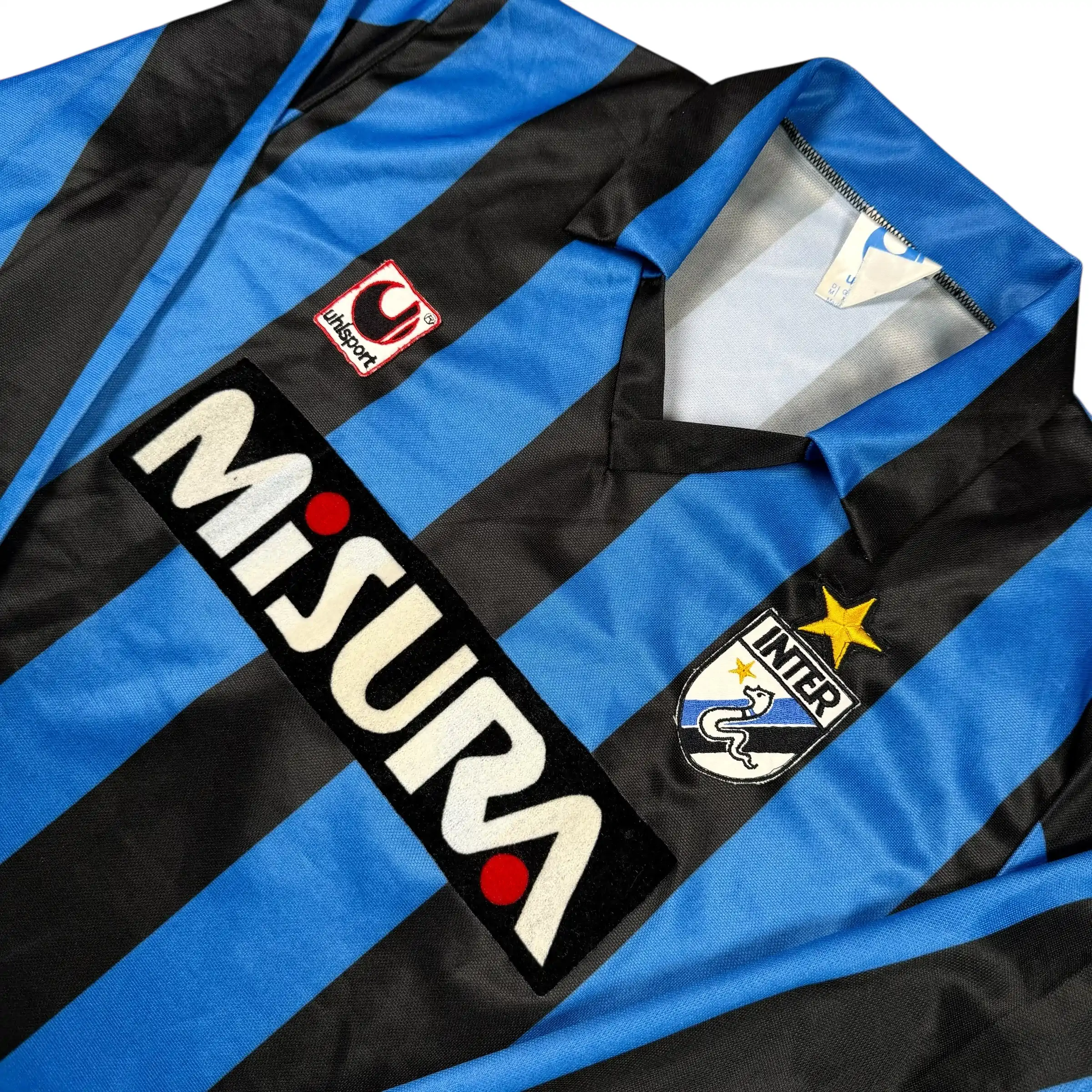 Note IFS : 9/10 – Maillot ultra rare de l’Inter Milan, quasiment introuvable dans cet état, version manches longues fabriquée par Uhlsport en Allemagne de l’Ouest comme l’indique l’étiquette, sponsor Misura en feutrine parfaitement conservé, un détail très rarement aussi propre sur ce modèle, ancien écusson de l’Inter brodé, une véritable pièce de collection.