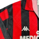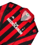 Note IFS : 8/10 – Maillot de l’AC Milan 1989 en très bon état pour son âge, avec quelques bouloches et fils tirés mais une superbe conservation. Sponsor sublimé, logos Kappa et étoile Coupe d’Europe brodés. Déjà hyper rare de base, encore plus difficile à trouver en version manches longues. Iconic.