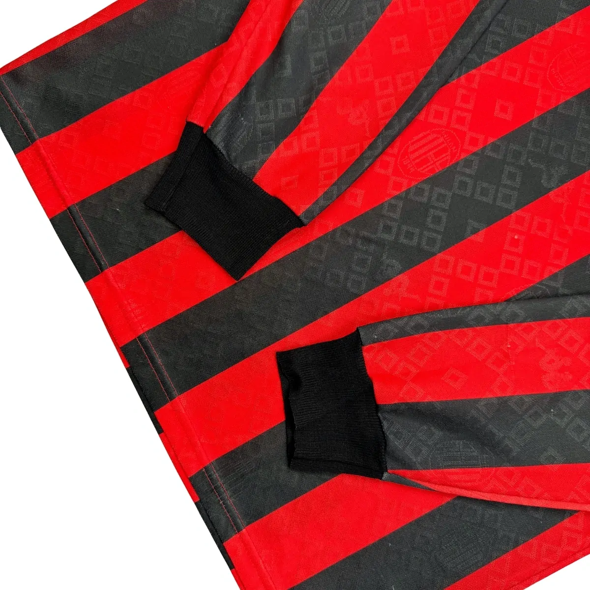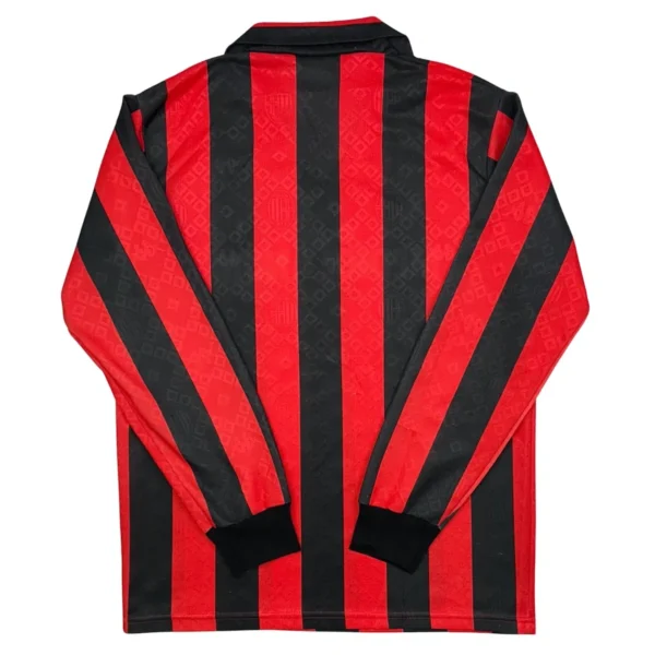 Note IFS : 8/10 – Maillot de l’AC Milan 1989 en très bon état pour son âge, avec quelques bouloches et fils tirés mais une superbe conservation. Sponsor sublimé, logos Kappa et étoile Coupe d’Europe brodés. Déjà hyper rare de base, encore plus difficile à trouver en version manches longues. Iconic.