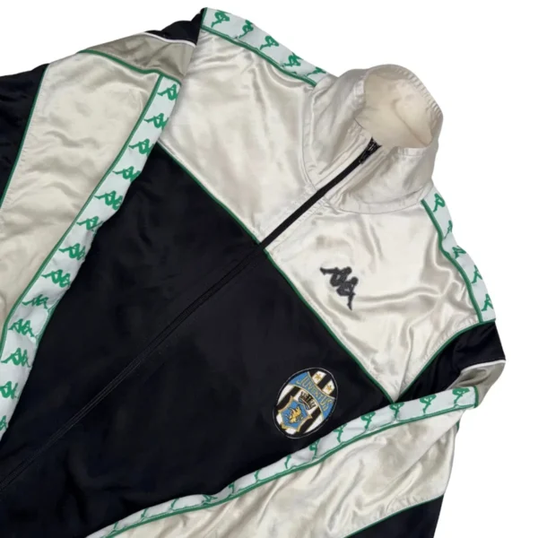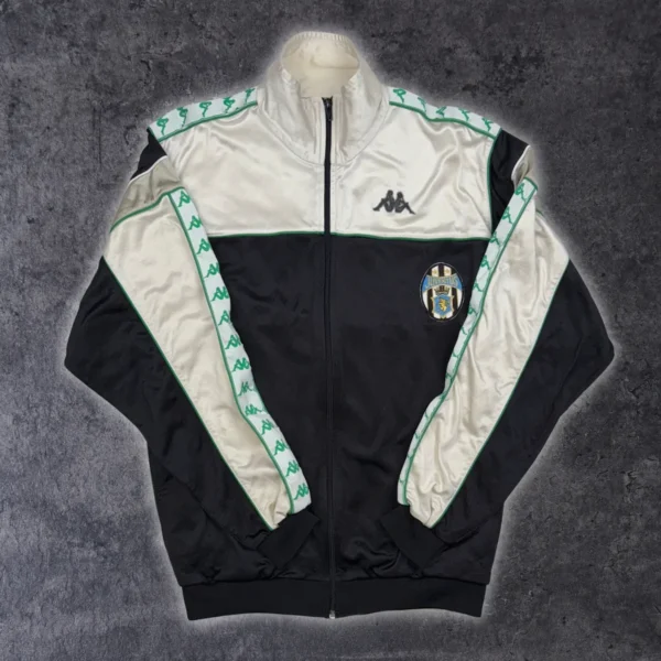 Note IFS : 9/10 – Excellente condition pour cette rarissime veste Kappa de la Juve qui date de 1990. Plus vieille que nous et aussi bien conservée ! Une veste facile à porter avec un jeans et une belle paire de pompes pour un style rétro-chic !