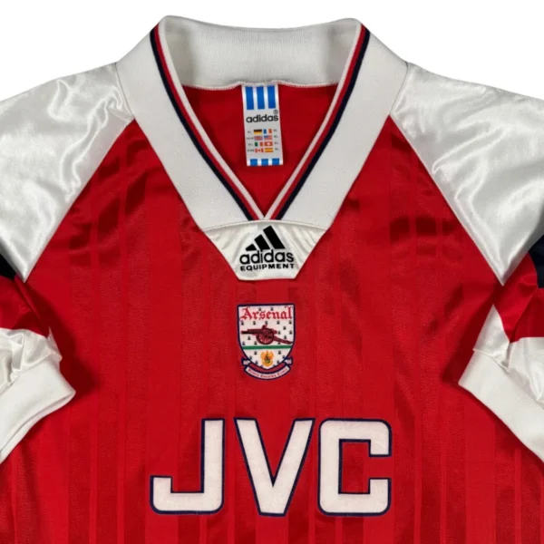 Note IFS : 9/10 – Maillot vintage d’Arsenal ultra rare, dans un état proche du parfait. Le mythique sponsor JVC, le logo Adidas et l’écusson des Gunners en feutrine sont comme neufs. Une pièce Iconic et quasi introuvable, un vrai bijou pour les collectionneurs et les nostalgiques de Highbury. Tu dégaines ce maillot sur toi et tu prends +100 en aura direct.