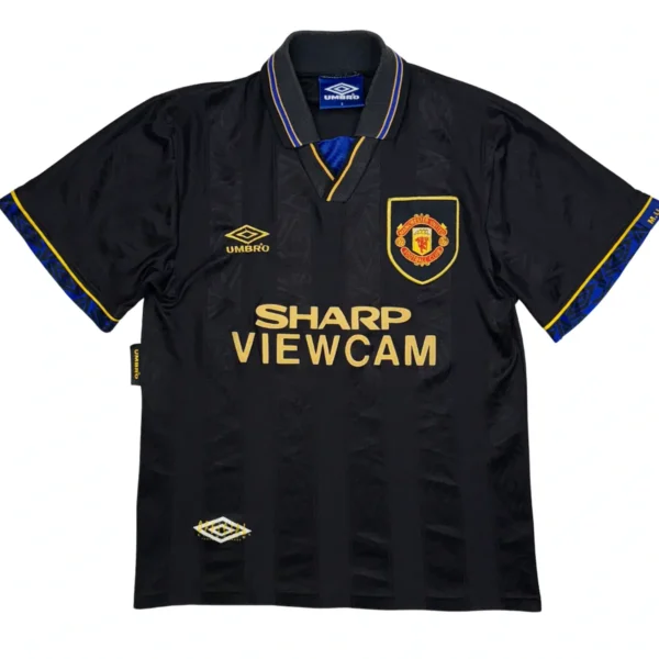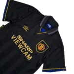 Le 25 Janvier 1995, Eric Cantona sautait les pieds en avant sur un supporter de Crystal Palace à Selhurst Park. Le King s’est justifié en assurant que le supporter l’avait insulté. Ce moment culte fera de Cantona une superstar sur et en dehors du terrain. Ce maillot appelé « The Kung Fu Kick Shirt » est donc très recherché par les fans des Red Devils qui s’identifient au caractère bien trempé de leur iconic numéro 7 !