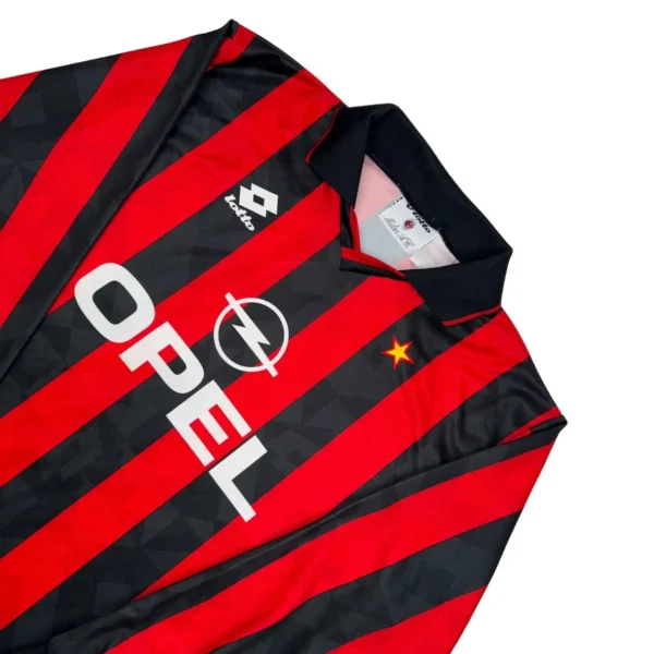 Note IFS : 9/10 – Rare maillot du Milan AC manches longues signé Lotto, en état quasi parfait. Sponsor Opel Iconic, design 90’s pur jus, une vraie pépite collector qui fête déjà ses 30 ans. Pour les vrais fans de cette époque légendaire.