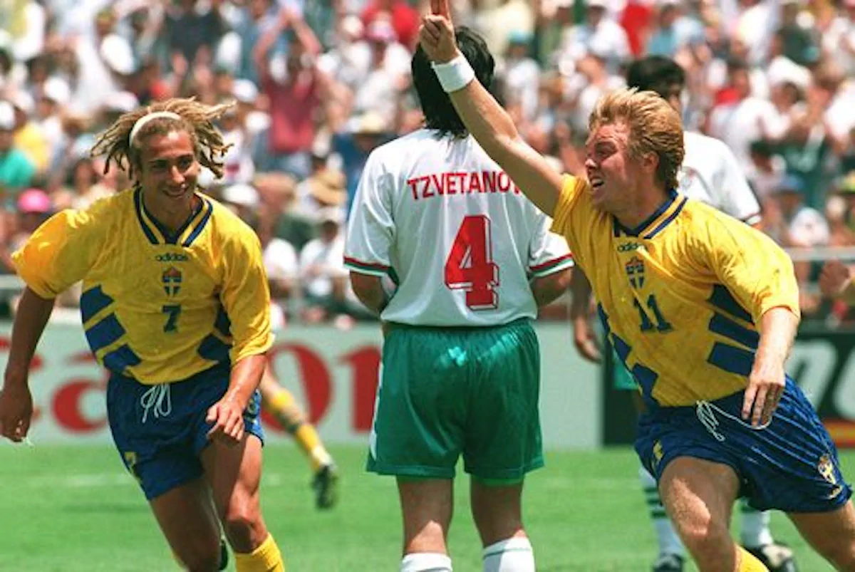 La Coupe du Monde 94 se déroule aux USA et la Suède est bien de la partie. Les coéquipiers de Larsson s’en sortent brillamment en poule malgré des adversaire compliqués sur le papier : Brésil, Cameroun et Russie. Les Suédois vont déjouer tous les pronostics et se faufiler jusqu’en demi-finale. Ils sont éliminés par le Brésil de Romario qui va d’ailleurs marquer en fin de match et stopper le magnifique parcours de la Suède.