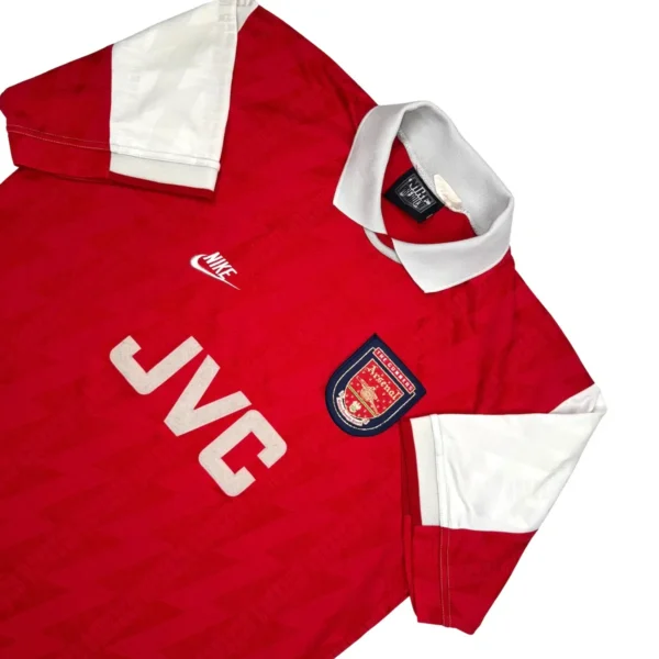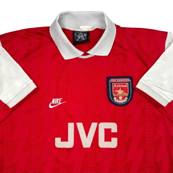 Note IFS : 9/10 – Excellent état général pour ce maillot des Gunners. Sponsor JVC en feutrine, swoosh Nike vintage, et l’inscription “Gunners” subtilement intégrée dans le design : une vraie pépite pour les fans d’Arsenal old school.