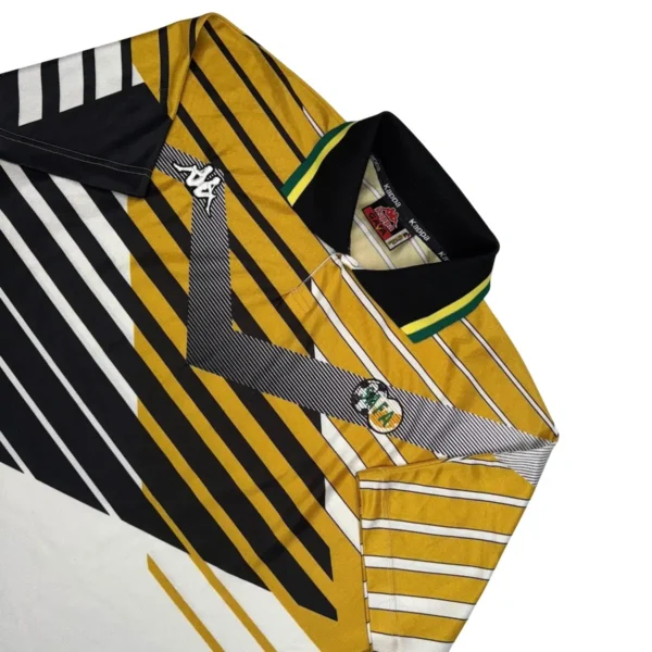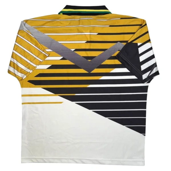 Note IFS : 8/10 – Rare maillot de l’Afrique du Sud en très bon état, avec seulement quelques bouloches. Bien conservé, design rétro qui claque, une vraie pièce vintage qui sort du lot pour les fans des Bafana Bafana ou amateurs de belles pièces de collection.