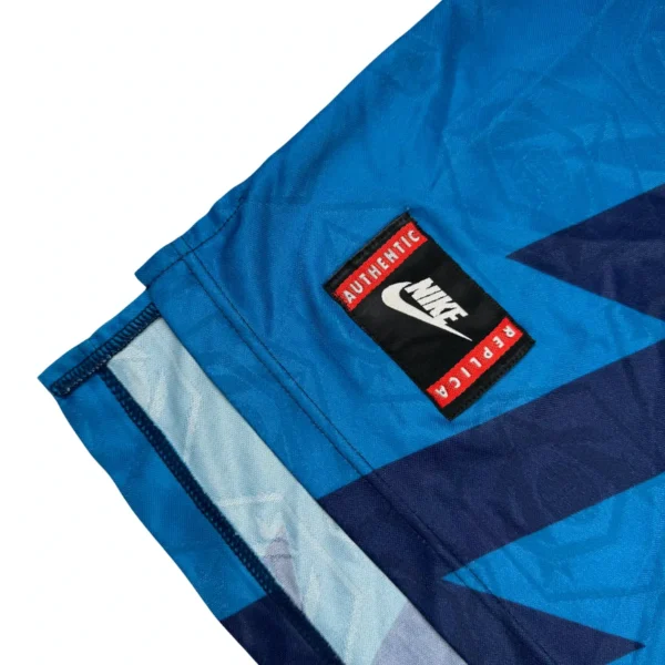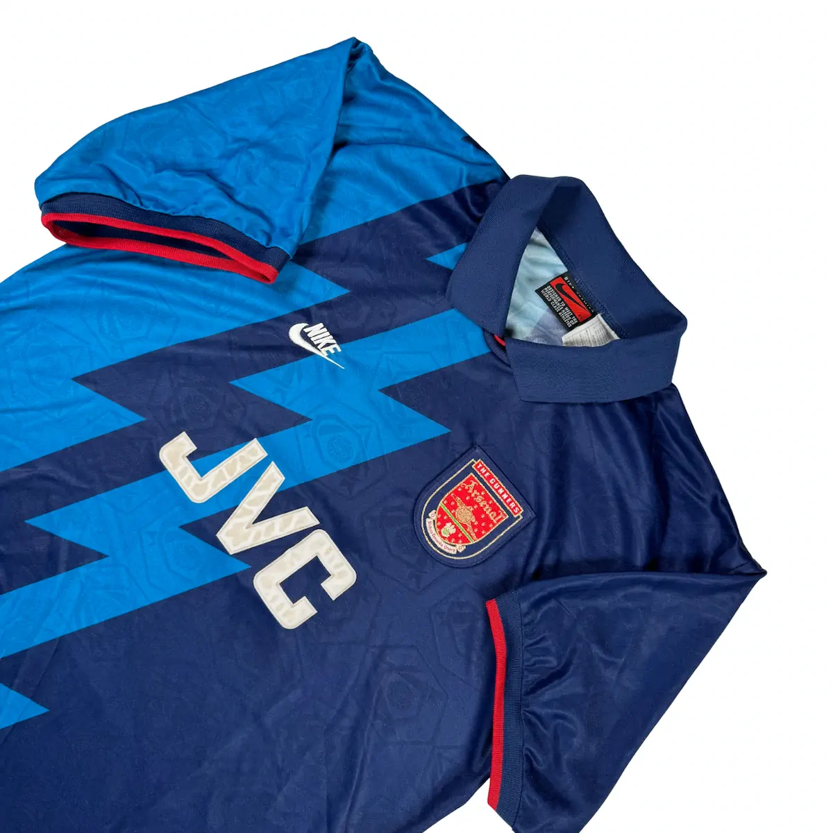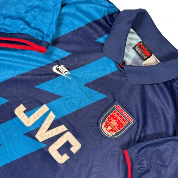 Note IFS : 9/10 – Excellent état général pour ce rare maillot des Gunners. Le logo Nike et l’écusson avec l’ancien emblème d’Arsenal sont brodés et impeccables. L’Iconic sponsor JVC en feutrine est magnifiquement conservé malgré une légère usure liée au temps. Et que dire de ce design rétro… le logo Nike vintage, le col travaillé, l’éclair au centre et le « Arsenal » brodé dans le dos. Une vraie merveille signée Nike à l’ancienne.