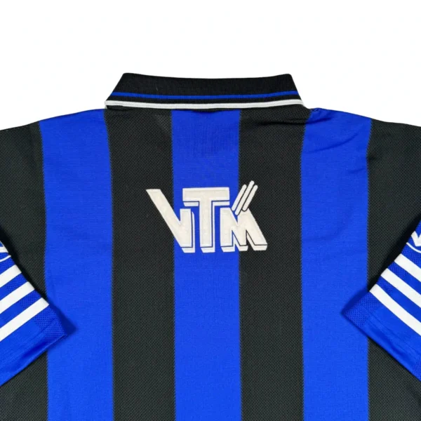 Note IFS : 9/10 – Excellente condition générale pour ce maillot rétro du Club de Bruges. Une petite tache sur le sponsor, sinon c’était le 10/10 assuré. Très rare dans un tel état, avec les sponsors en feutrine impeccables.