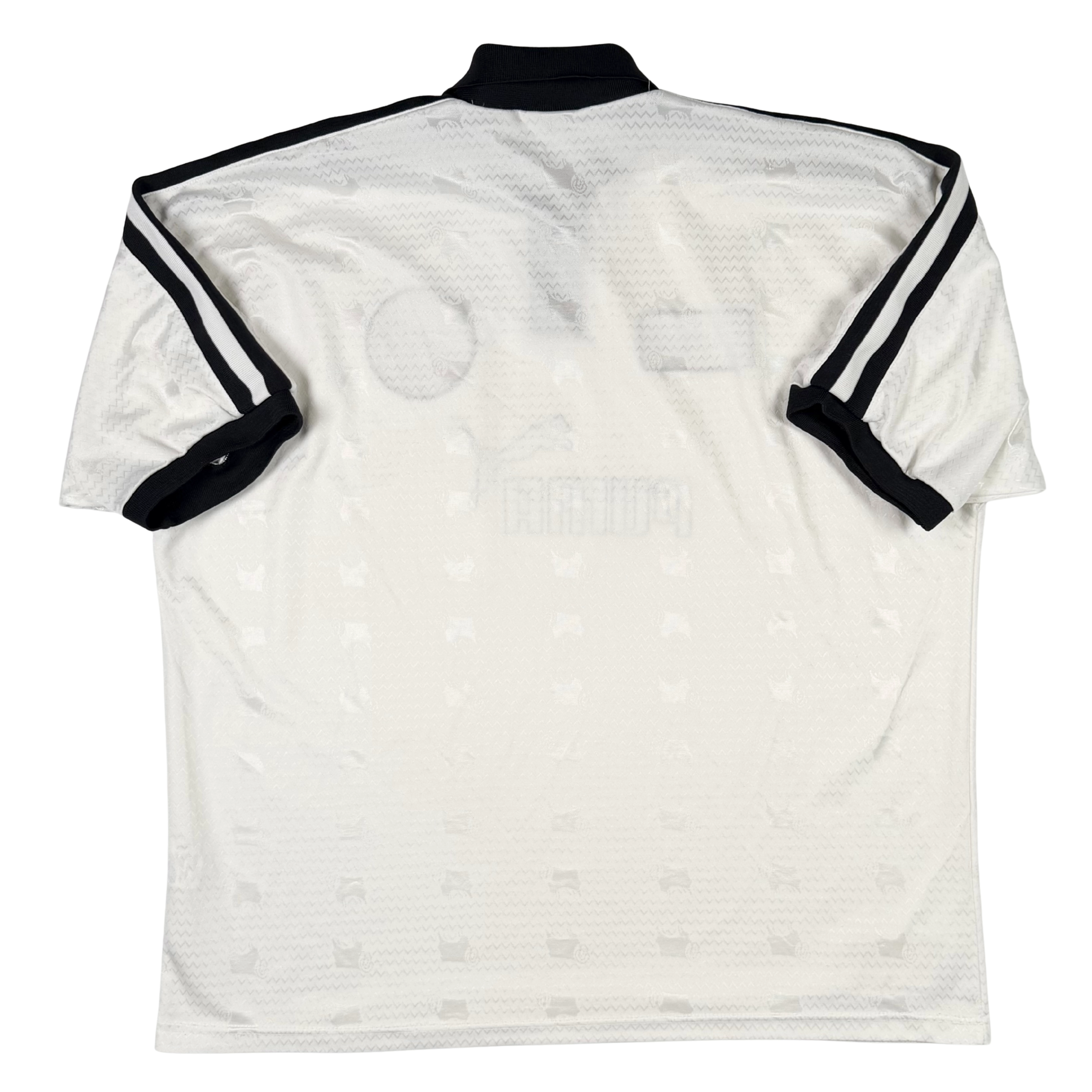 Note IFS : 9/10 – Excellente condition pour ce rare maillot vintage de Derby County, extrêmement difficile à trouver dans un tel état. Écusson brodé parfait, logo Puma à gauche également intact, et superbe sponsor Puma noir en feutrine, lui aussi en excellent état. Une magnifique pièce rétro qui sent bon l’Angleterre, avec un charme authentique et bien vintage comme on kiffe chez IFS !