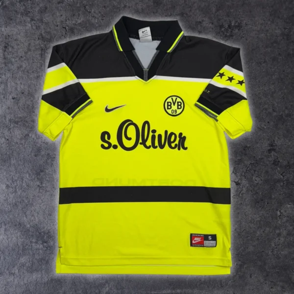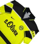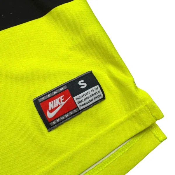 Note IFS : 8/10 – Rare maillot vintage du Borussia Dortmund datant de 1997. Pas mal de bouloches mais sponsor sublimé dans le textile, swoosh Nike et écusson du club brodés et parfaits. Une pièce collector de la fin des années 90, incroyablement streetwear.