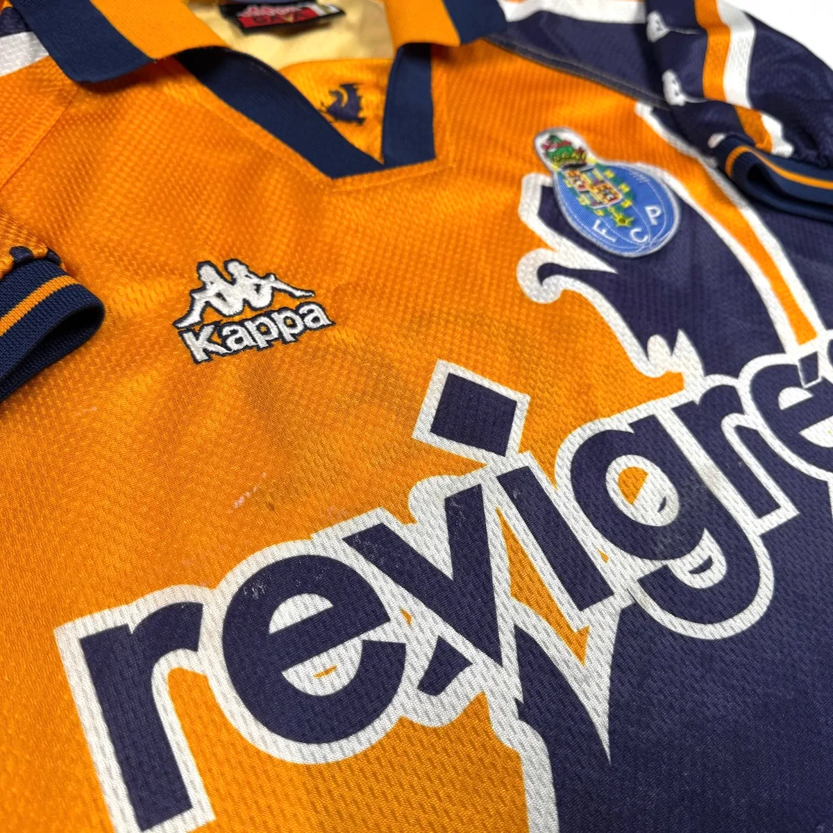 Note IFS : 8/10 – Rare maillot vintage du FC Porto avec quelques traces sur l’avant et pas mal de bouloches, mais toujours aussi Iconic avec ce design légendaire au dragon, une vraie pièce pour les fans des Dragoes qui aiment les maillots chargés d’histoire.