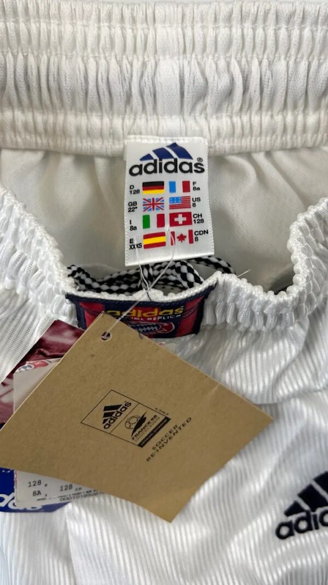 Note IFS : Neuf + étiquettes – Short Adidas en version extérieur, taille enfant (8 ans) encore tout neuf ! Exceptionnel, rien qu’en regardant les étiquettes, on est transporté en 1998 ! Presque introuvable dans cette condition… Iconic.