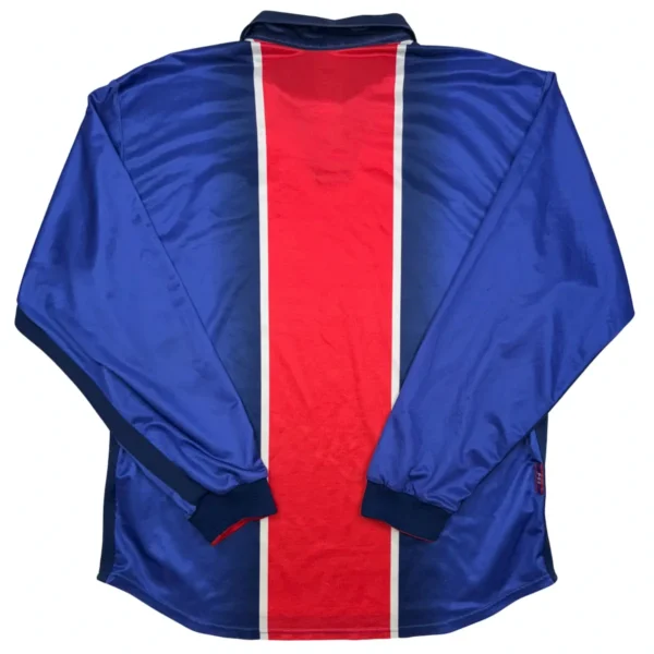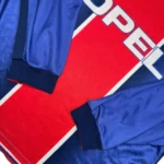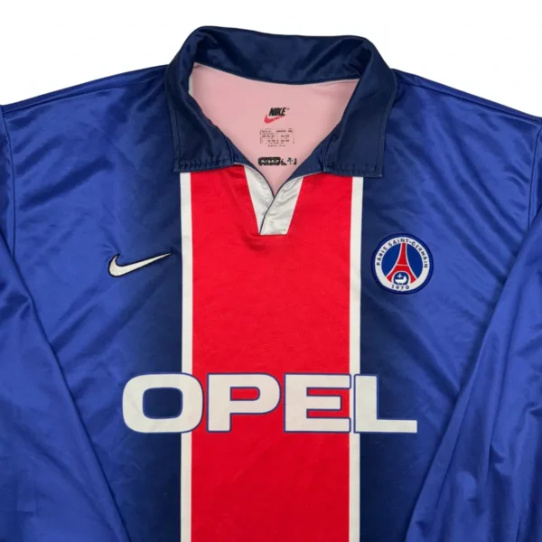 Note IFS : 9/10 – Pas mal de bouloches sur l’ensemble du maillot dû à l’âge de celui-ci. Très rare maillot du PSG datant de 1998, directement issu du stock pro. Non commercialisé : sans étiquette de taille Nike en bas et sans sponsor. Version longues manches, avec le logo Opel incrusté dans le tissu. Une pièce ultra rare, purement réservée aux pros à l’époque.