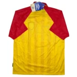 Note IFS : Neuf + étiquettes – Une vraie masterclass ce maillot avec sponsor Ola en feutrine. Une pièce 100 % d’époque, ultra propre, pleine de flow comme on aime chez IFS. Ce qui le rend encore plus spécial ? Il est neuf, jamais porté ni lavé. Le sponsor a un léger voile poussiéreux typique des maillots restés intacts toutes ces années. Technologie Vapa Tech d’Umbro, fabrication en Angleterre, et surtout… les étiquettes d’origine encore accrochées. C’est là que tout se joue. On est tout simplement les seuls à le proposer dans cet état. Collector ultime.