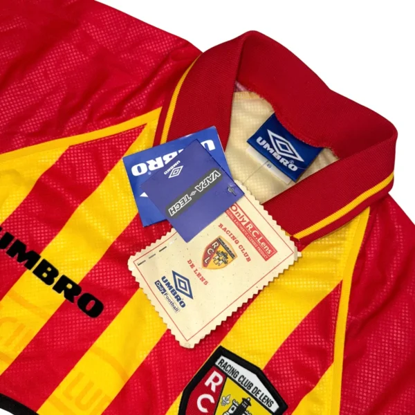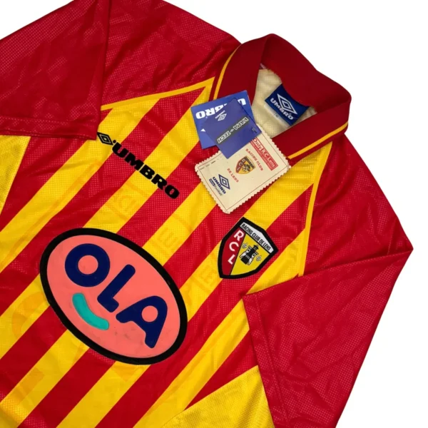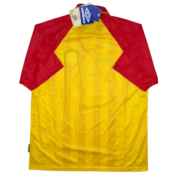 Note IFS : Neuf + étiquettes – Une vraie masterclass ce maillot avec sponsor Ola en feutrine. Une pièce 100 % d’époque, ultra propre, pleine de flow comme on aime chez IFS. Ce qui le rend encore plus spécial ? Il est neuf, jamais porté ni lavé. Le sponsor a un léger voile poussiéreux typique des maillots restés intacts toutes ces années. Technologie Vapa Tech d’Umbro, fabrication en Angleterre, et surtout… les étiquettes d’origine encore accrochées. C’est là que tout se joue. On est tout simplement les seuls à le proposer dans cet état. Collector ultime.