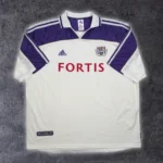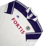 Note IFS : 10/10 – Maillot domicile d’Anderlecht vieux de plus de 25 ans et encore parfaitement conservé. La feutrine de l’Iconic sponsor Fortis est intacte, une vraie pépite qui a traversé le temps. Adidas bien vintage comme on l’aime.