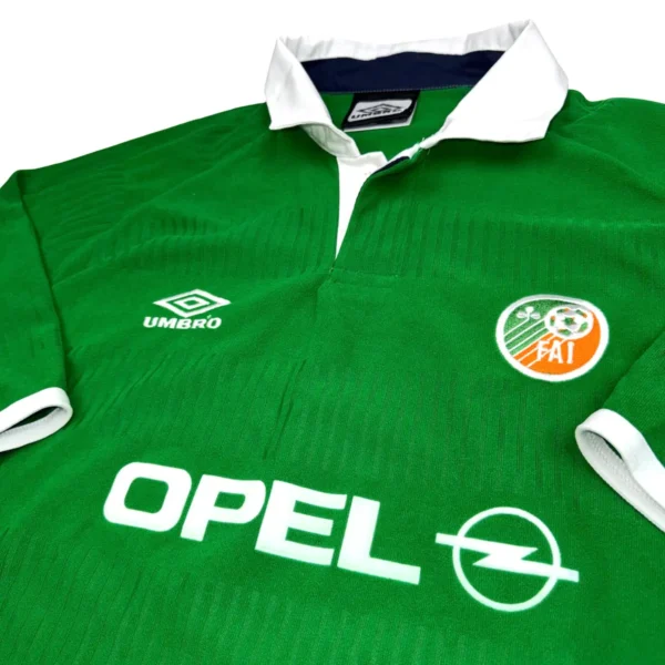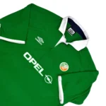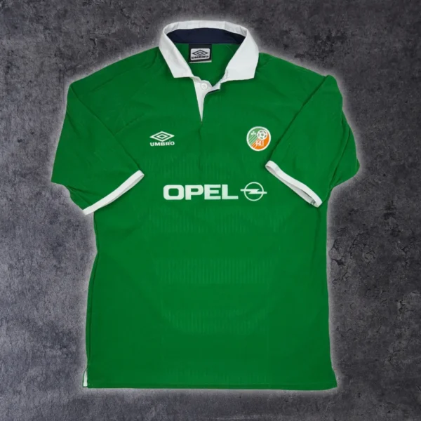 Note IFS : 10/10 – Parfaite condition pour ce maillot vintage de l’Irlande, qui a plus de 20 ans au compteur. Le sponsor Opel en feutrine est parfaitement conservé, comme neuf. Doté de la technologie Form UV d’Umbro, pensée pour protéger du soleil dans les pays nordiques, ce maillot allie histoire et technicité. Une vraie pépite pour les passionnés de pièces authentiques.