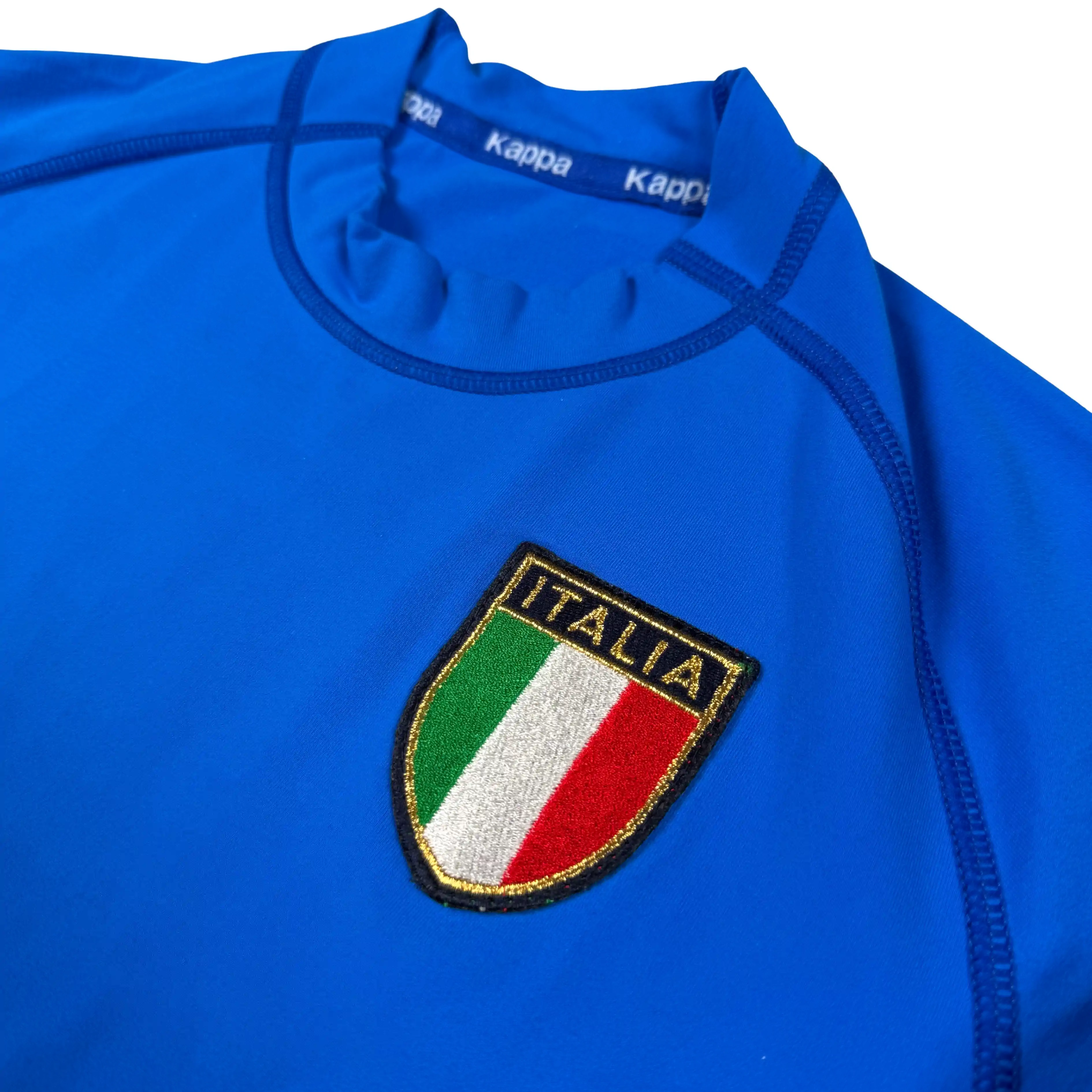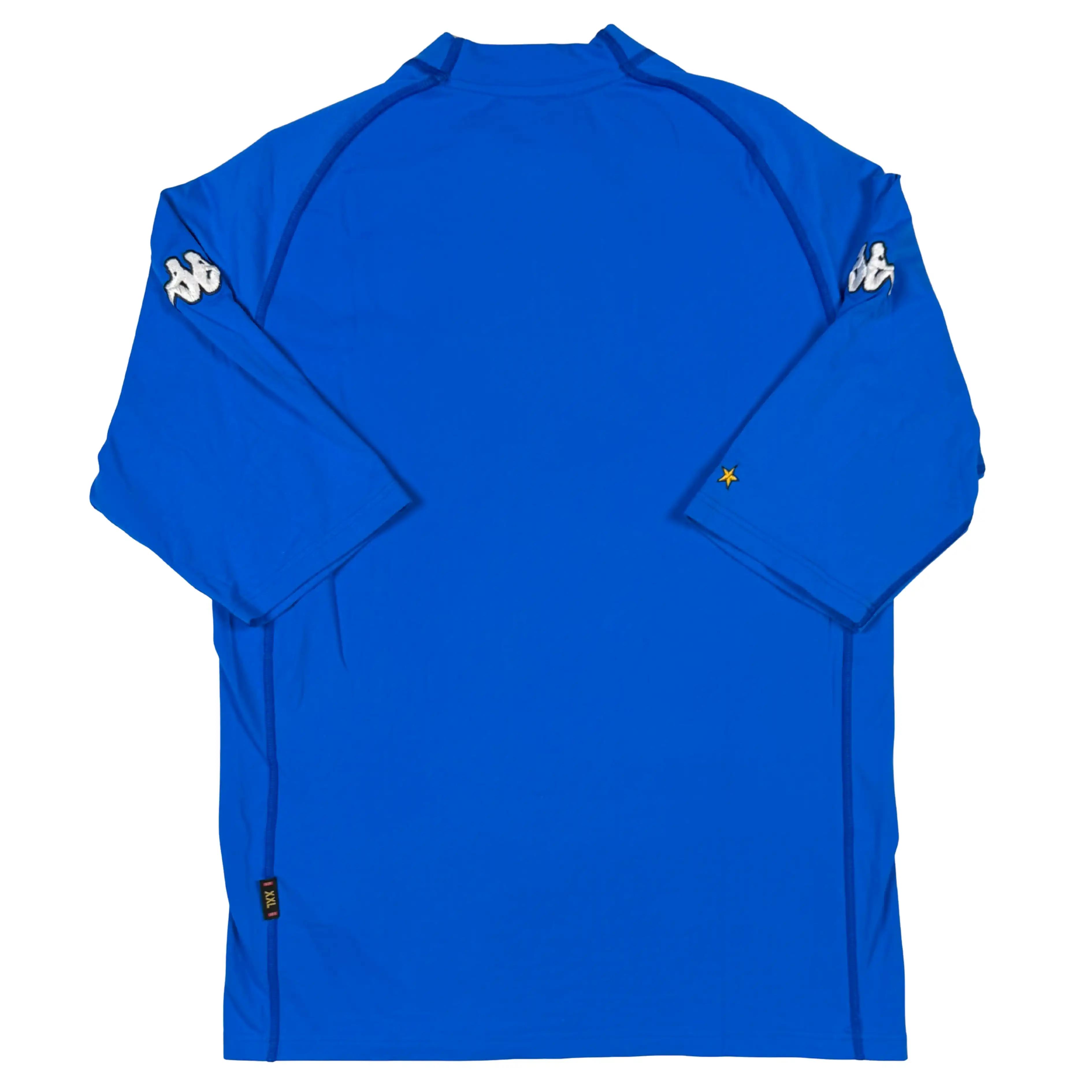 Note IFS : 10/10 – Maillot rétro de l’Italie en parfaite condition, avec tous les logos brodés et un état remarquable après plus de 25 ans. La coupe taille petit comme souvent avec Kappa. Une superbe pièce vintage de la Squadra Azzurra.