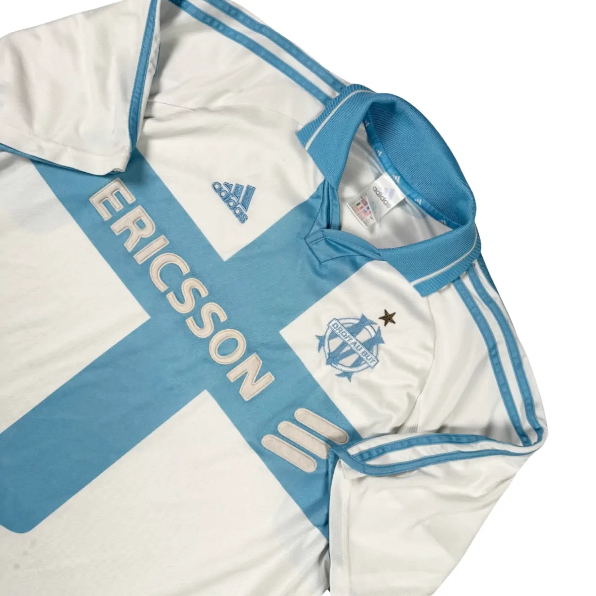 Note IFS : 8/10 – Incroyable pépite de l’OM en bon état général, avec seulement quelques bouloches et petites taches à signaler (voir photos). Un style vintage magnifique signé Adidas, avec le sponsor Ericsson en feutrine qui donne tout le charme de l’époque. Une vraie pièce !