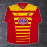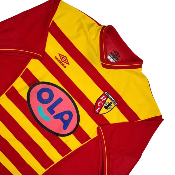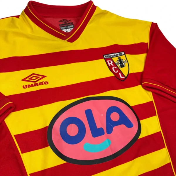 Note IFS : 9/10 – Excellente condition générale pour ce rare maillot vintage du RC Lens. L’Iconic sponsor Ola est un tout petit peu marqué par le temps, rien de bien grave. L’ensemble de ce maillot rétro par Umbro est hyper bien conservé. Design typique des Sang et Or.
