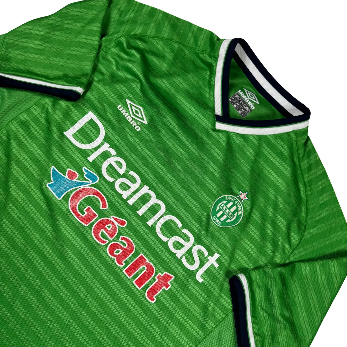 Note IFS : 9/10 – Maillot vintage de Saint-Étienne 2000 signé Umbro, sponsors très légèrement usés mais l’ensemble reste super propre pour une pièce qui a plus de vingt ans, un bon 9/10 sans forcer. Et le sponsor Dreamcast… franchement, c’est du patrimoine, un truc qui hurle football des années 2000. Une vraie pépite pour les fans des Verts version rétro.