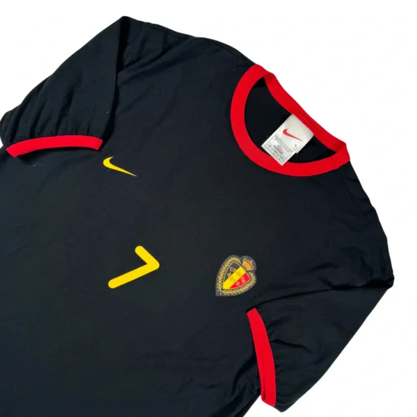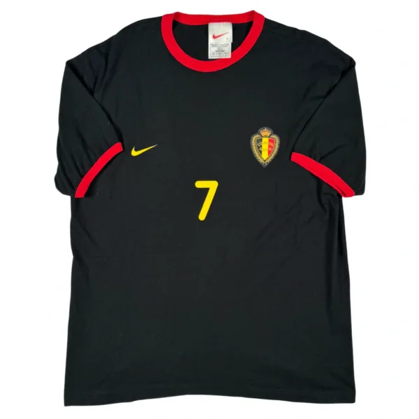 Note IFS : 9/10 – Excellente condition pour ce t-shirt officiel Nike des Diables Rouges, tous les éléments floqués. Modèle en coton vendu à l’époque en parallèle des maillots supporters.