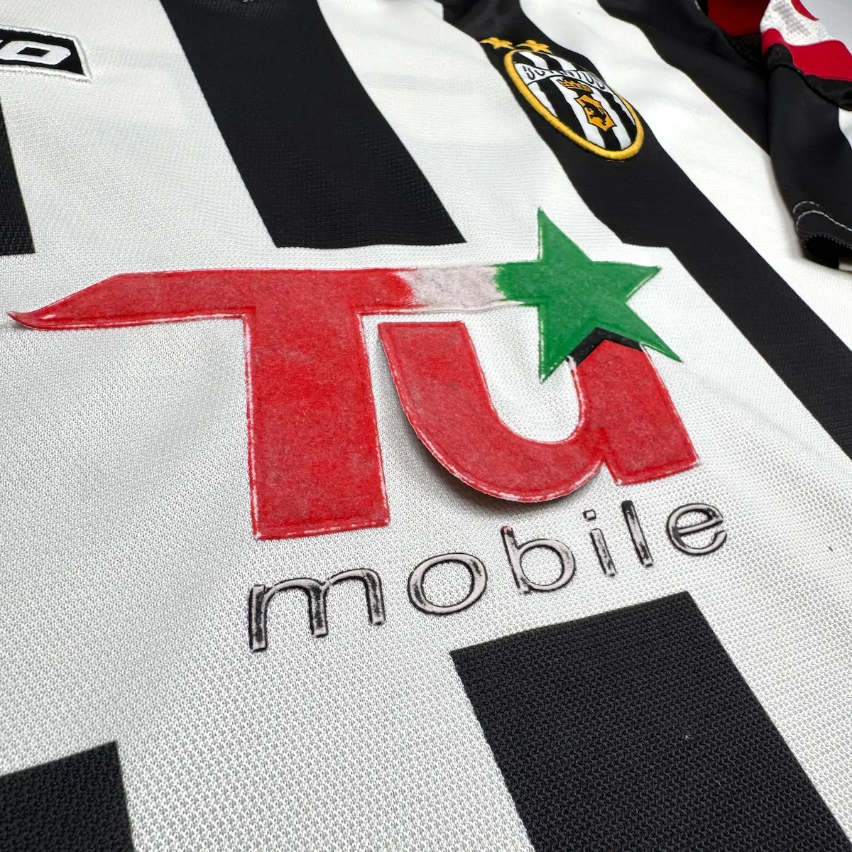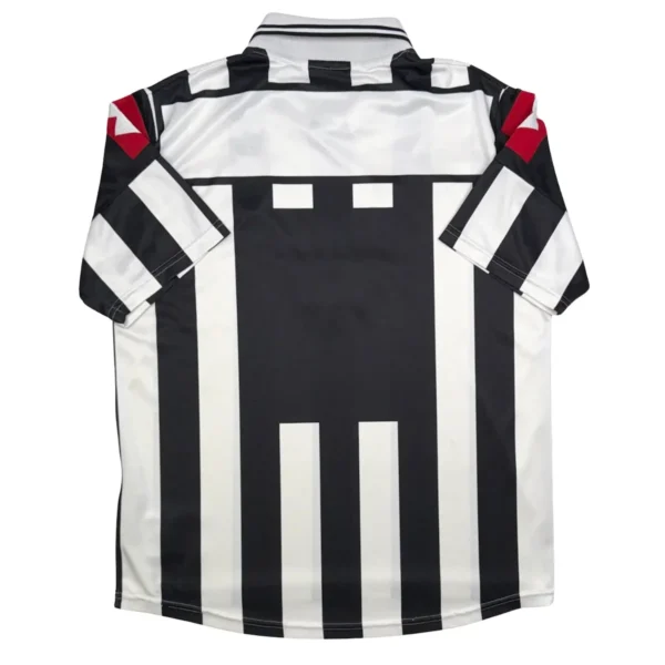 Note IFS : 8/10 – Bon état général pour ce maillot rare porté en Ligue des Champions, avec le sponsor spécifique à la compétition différent du Fastweb utilisé en Serie A. Un accroc est à noter sur la manche droite et le sponsor commence à se décoller, mais l’ensemble reste bien conservé. Maillot collector.