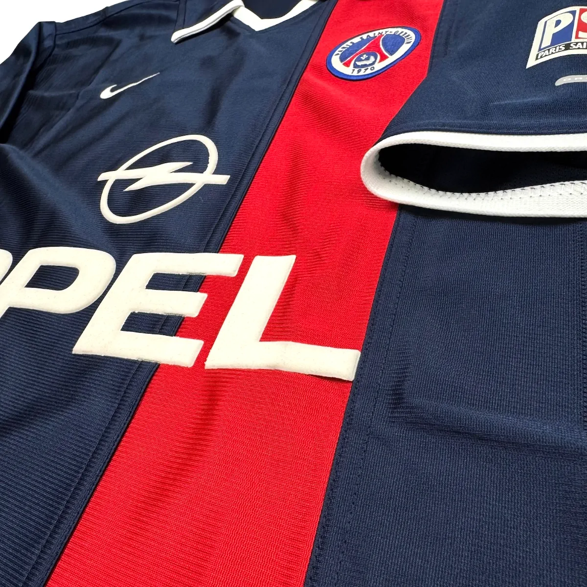 Note IFS : 9/10 – Maillot domicile rare du PSG en excellent état, avec sponsor Opel en feutrine. Légère décolle sur la partie basse du “L” (non recollée pour préserver le maillot). Pour le reste, la pièce est impeccable !