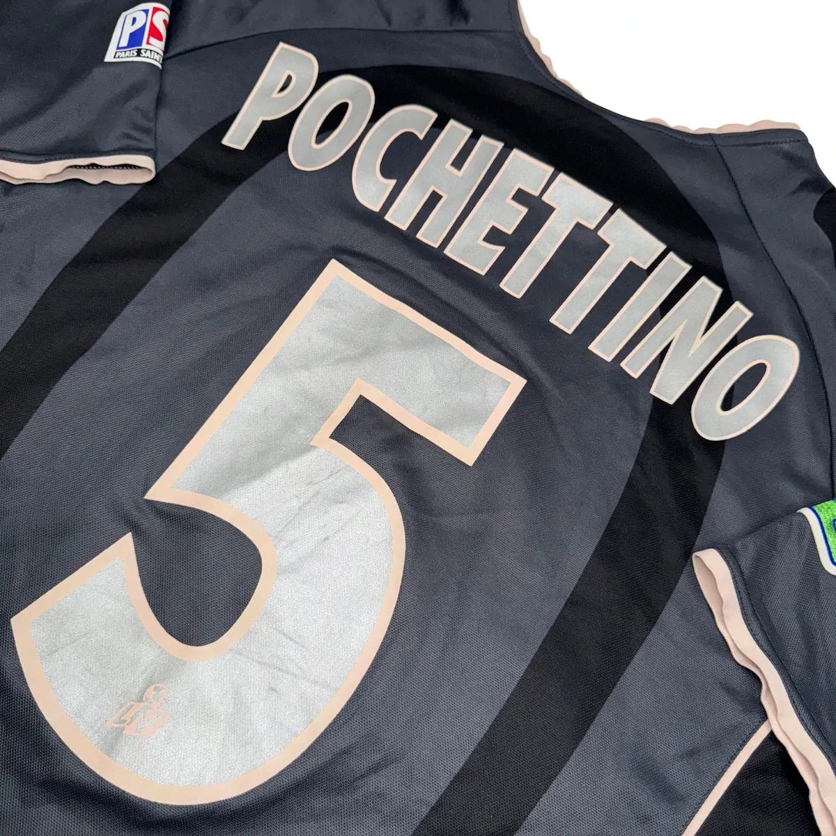 Le PSG termine 4e de Ligue 1 en 2001/02. Pochettino est capitaine, solide derrière et buteur à l’occasion. Paris remporte l’Intertoto, sort en 16e de finale de l’UEFA contre les Rangers aux tirs au but. Deux demi-finales en coupes, stoppé par Bastia et Bordeaux. Ronaldinho (meilleur buteur), Okocha, Anelka, Heinze et Arteta complètent un effectif plein de stars.