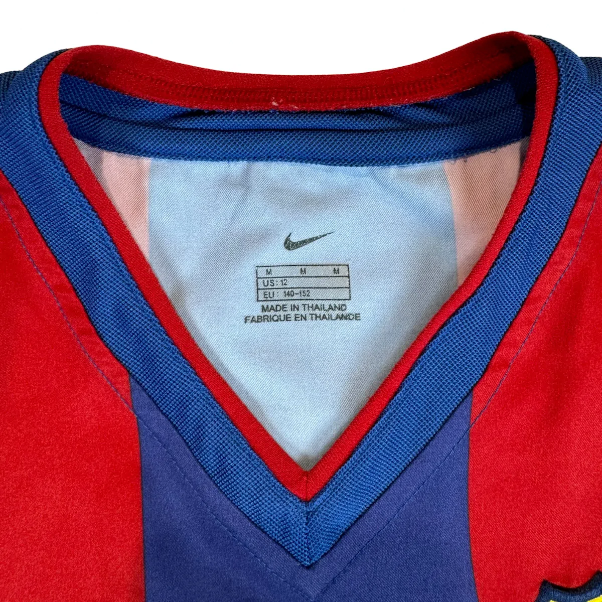 Note IFS : 9/10 – Excellente condition pour ce maillot vintage en taille M enfant (12 ans). Un maillot bien à l’ancienne par Nike. Simple et efficace comme toujours avec le Barça quand il s’agit du maillot domicile.