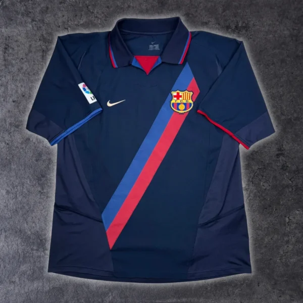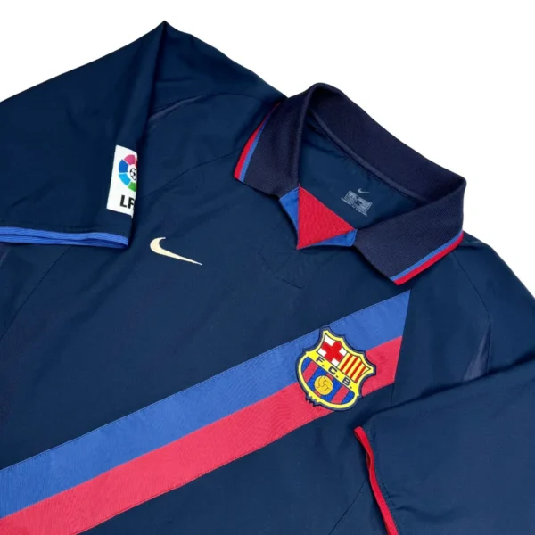 Note IFS : 9/10 – Excellente condition pour ce maillot vintage extérieur du Barça signé Nike. Détail de puriste : le swoosh blanc confirme qu’il s’agit bien de la version 2002/03. Si le logo était jaune, on serait sur le third 2003/04. Une pièce rare, bien old school, comme on les aime. Très proche du parfait !