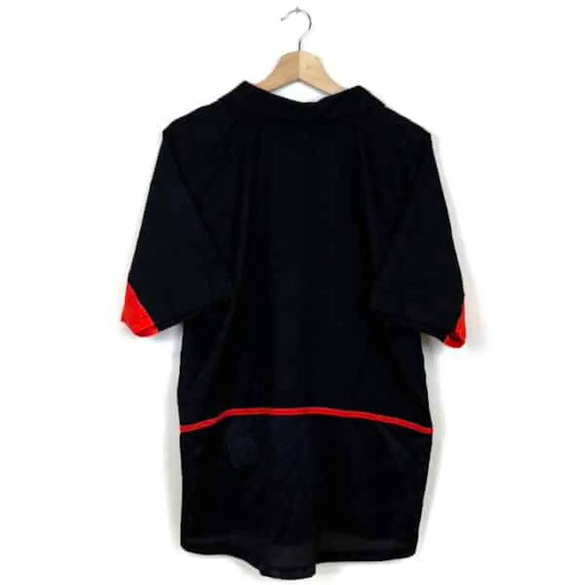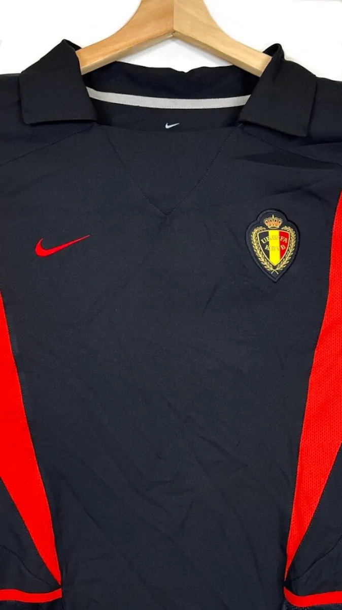 Note IFS : 10/10 – Rare maillots des Diables Rouges comme neuf ! Comme s’il sortait du magasin, cette pépite est intacte et le design par Nike est une véritable dinguerie. Petite touche vintage avec le col, le full black avec les touches de rouge dont le swoosh Nike… Un coup de coeur !