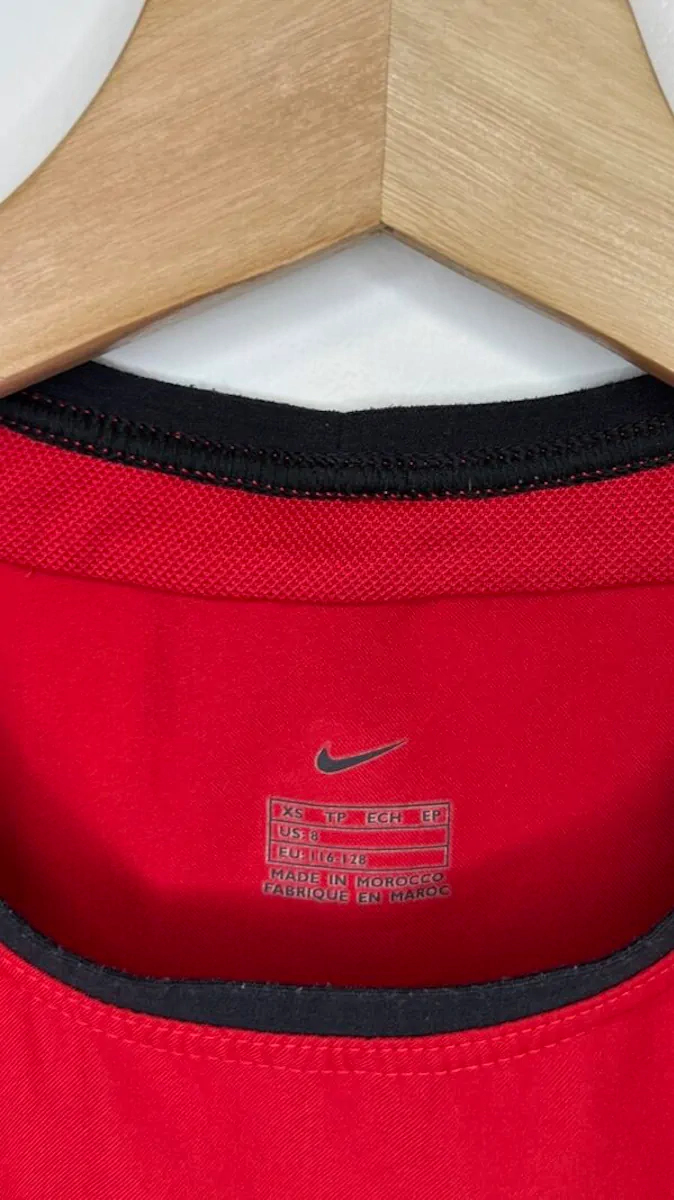 Note IFS : 9/10 – Excellent état pour ce rare maillot des Red Devils en taille enfant (8 ans). Le sponsor Vodafone en feutrine est un peu marqué par le temps, ça reste léger (voir photos). Le swoosh Nike et l’écusson sont parfaits. Cette pièce nous rappel inévitablement l’armada de Sir Alex composée de Giggs, Scholes, Ferdinand et CR7 pour ne citer qu’eux !