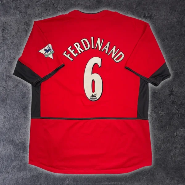 Note IFS : 9/10 – Excellente condition, avec un seul patch PL officiel sur la manche. Le numéro 6 en feutrine est un peu poussiéreux mais vieillit parfaitement, justement parce qu’il n’y a pas de plastique. Rare maillot de Manchester United de la saison 2002/03, et pas 2003/04. Pourquoi ? Parce qu’en juillet 2002, Rio Ferdinand signe en provenance de Leeds pour un transfert record à l’époque (environ 46 millions d’euros). Il porte le numéro 6 une seule saison avant de passer à son Iconic numéro 5. Ce maillot marque donc les débuts d’un des plus grands défenseurs de l’histoire de United. Et ce genre d’anecdotes, c’est tout ce qu’on aime chez IFS. De rien.