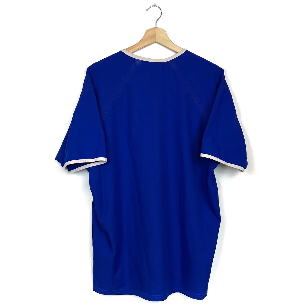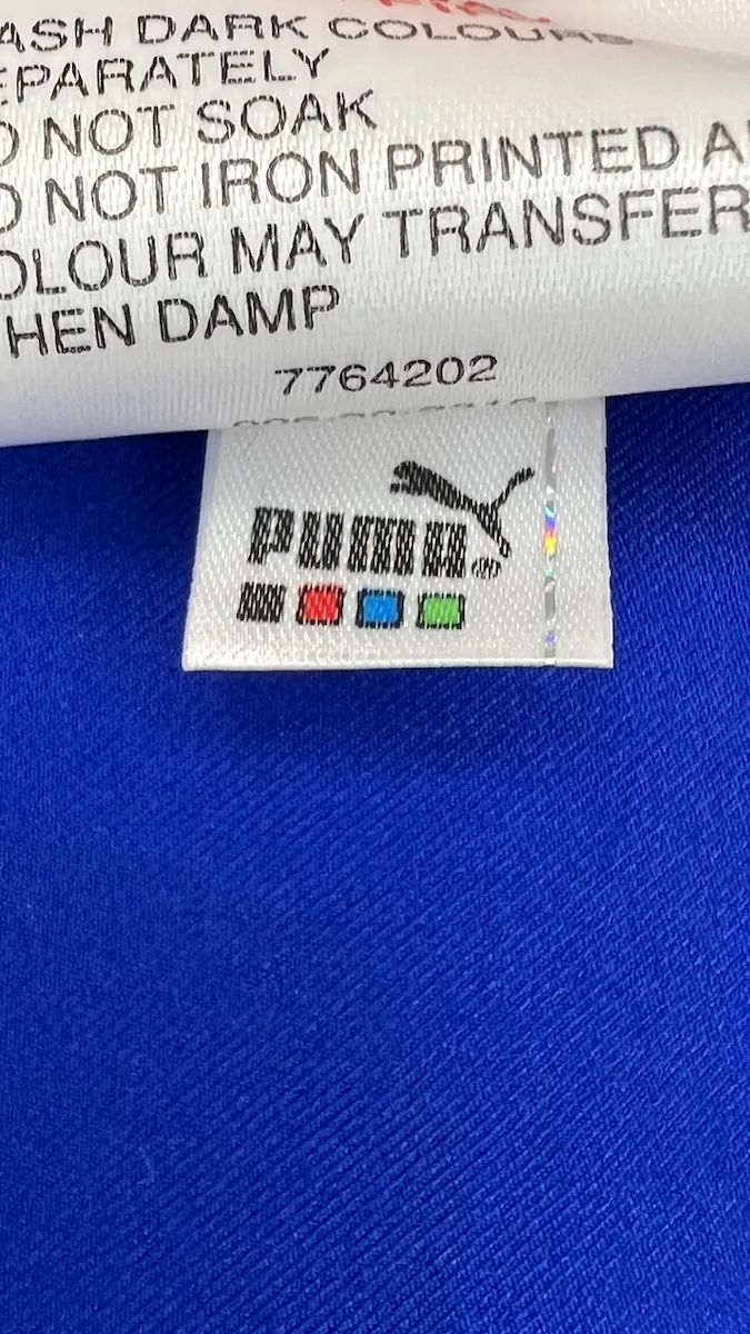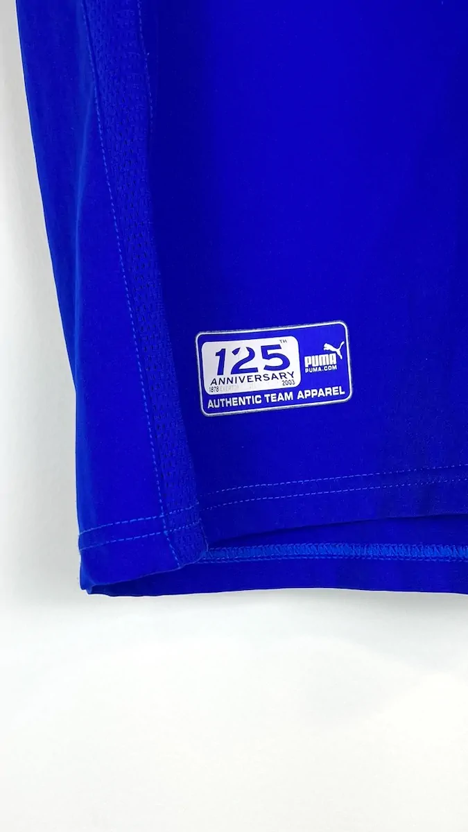 Note IFS : 10/10 – Parfait, le maillot est comme neuf en plus d’être rare ! Il s’agit d’une pièce collector car elle célèbre les 125 ans du club. Le sponsor et l’écusson du club sont en feutrine et en super état. Une sublime pièce vintage qui fait penser à Wayne Rooney et son numéro 18. Réussite par Puma, un classique de Premier League !