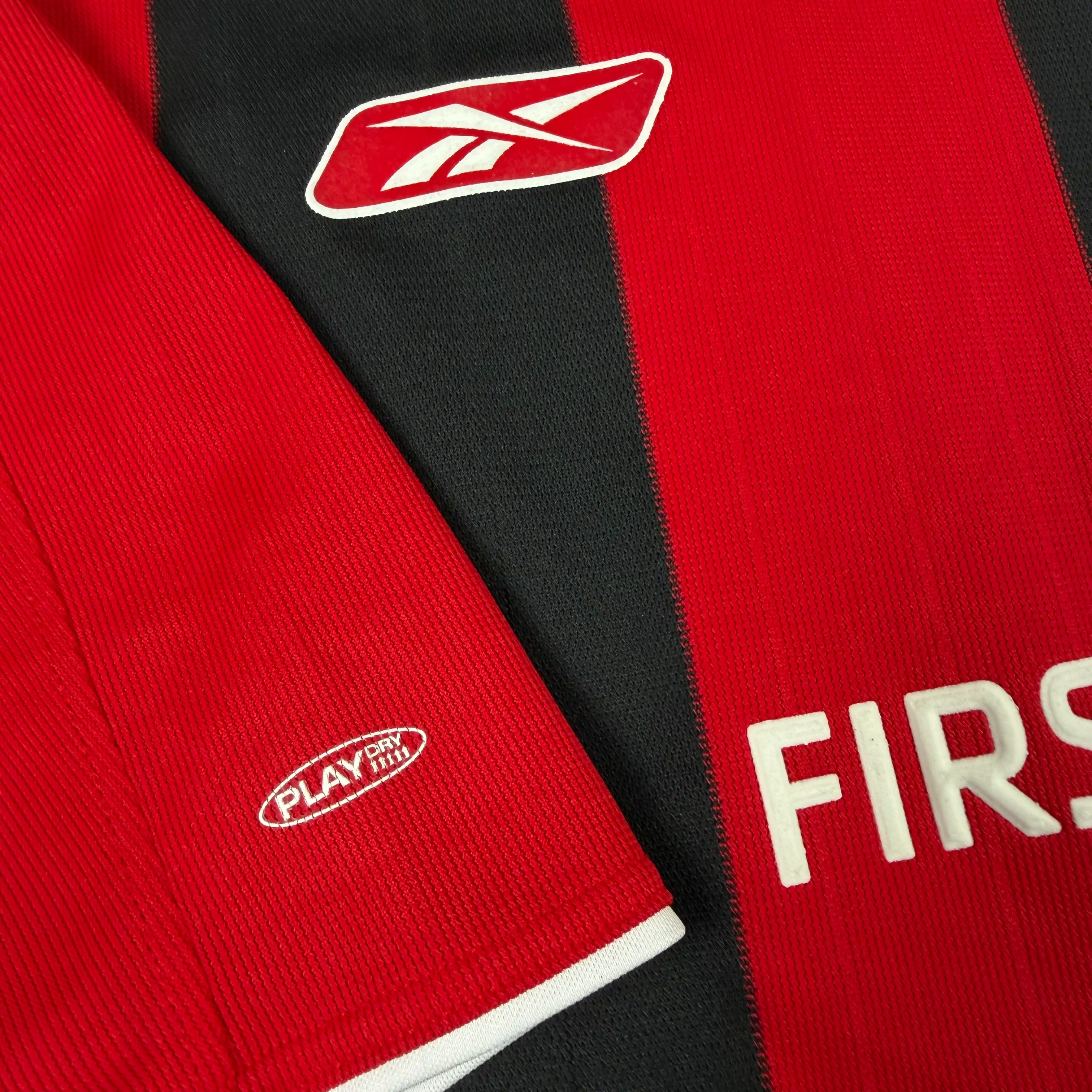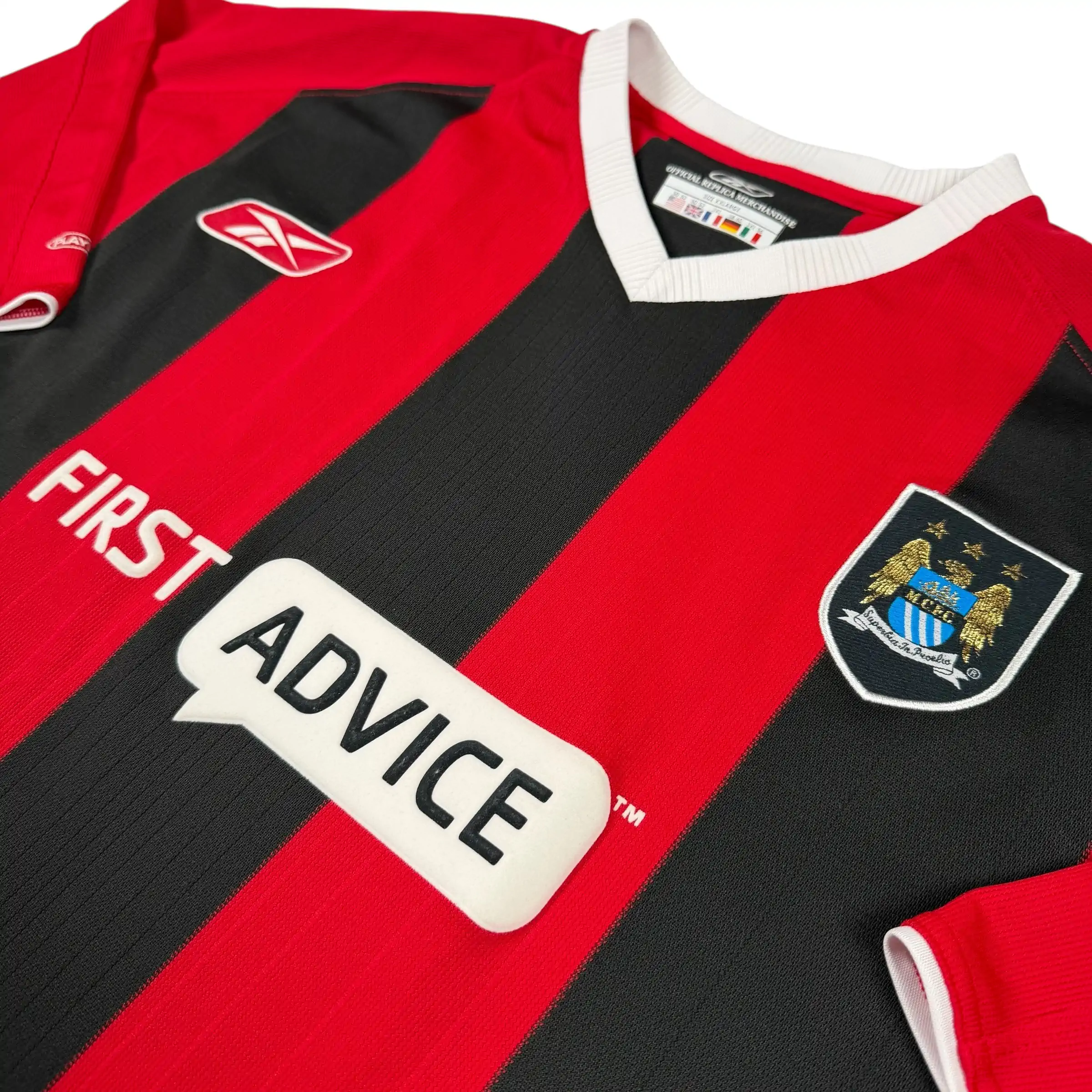 Note IFS : 10/10 – Maillot vintage de Manchester City sous Reebok, une pièce de 2003 dans un état exceptionnel pour son âge, sponsor et logo Reebok en feutrine comme neufs, écusson de City à l’ancienne parfaitement conservé, un modèle devenu rare dans cet état, qui rappelle notamment le passage de Nicolas Anelka avec le numéro 39, dans un effectif où figurait aussi Daniel Van Buyten, une vraie pièce qui respire le début des années 2000.