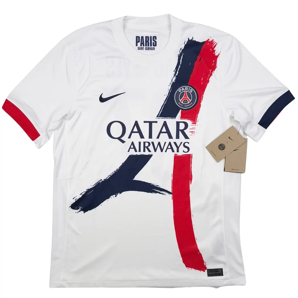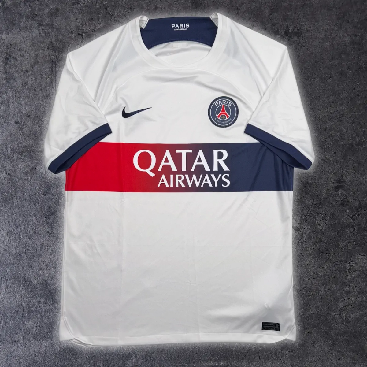 Note IFS : 9/10 – Excellent état, un mini point sur le sponsor nous rappel à quel point nous sommes à cheval sur la qualité car on a vraiment envie de donner un 10/10 à cette pépite qui ne comporte aucun défaut notable ! Une splendide pépite du PSG assez rare et qui nous rappel forcément Pedro Miguel Pauleta ! Nike, Paris, Thomson…