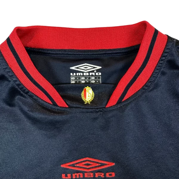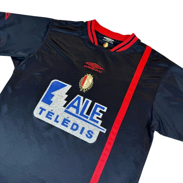 Note IFS : 8/10 – Très bon état général pour ce maillot vintage du Standard, seul le sponsor Ale Télédis Iconic est usé. Sinon, le reste est hyper bien conservé. Les logos Umbro sont en feutrine tout comme l’écusson des Rouches à l’ancienne.