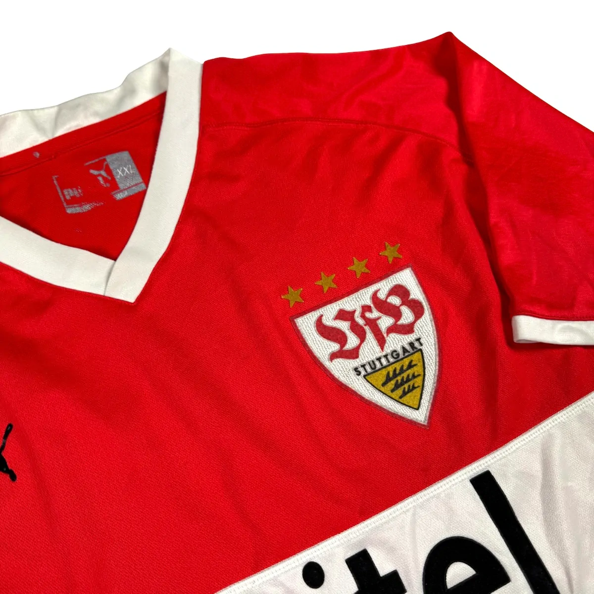 Note IFS : 9/10 – Maillot vintage de Stuttgart avec tous les logos en feutrine super bien conservés, un peu de bouloches et quelques petits accrocs qui rappellent son âge, une vraie pièce old-school pour les fans du VfB.