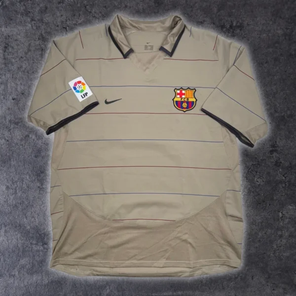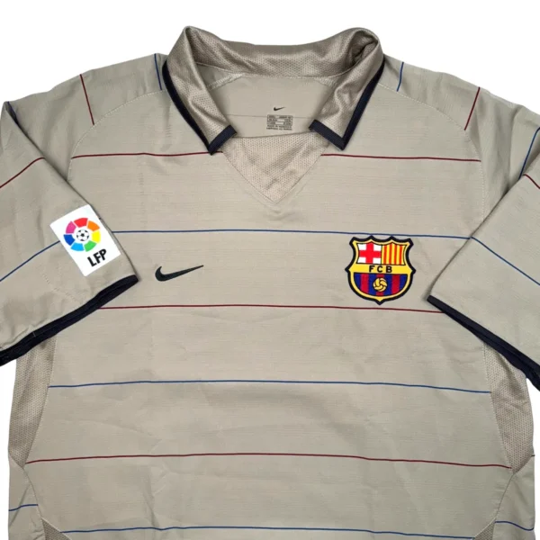 Note IFS : 10/10 – Rare maillot Nike officiel du Barça en condition parfaite malgré ses plus de 25 ans. Utilisé comme extérieur en 2003/04, puis comme third la saison suivante. Un maillot collector qui nous fait d’office penser à Ronaldinho ! Quel flow ce maillot franchement…