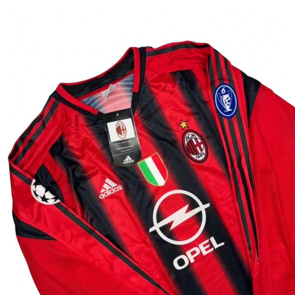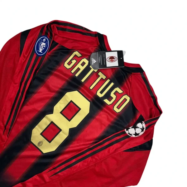 Note IFS : Neuf + étiquettes – Maillot vintage ultra rare de l’AC Milan saison 2004 dans une configuration collector : manches longues, flocage officiel de Gattuso, patchs Ligue des Champions et Scudetto. Une légère usure sur les bandes Adidas de l’épaule gauche et un début de décollement du patch Scudetto à noter, mais rien de méchant. État neuf avec ses étiquettes d’époque toujours accrochées. Si tu les enlèves, tu divise la valeur par 2 donc réfléchis avant si tu décide de porter le maillot. À conserver précieusement, car ce genre de pièce ne fera que prendre de la valeur avec le temps.