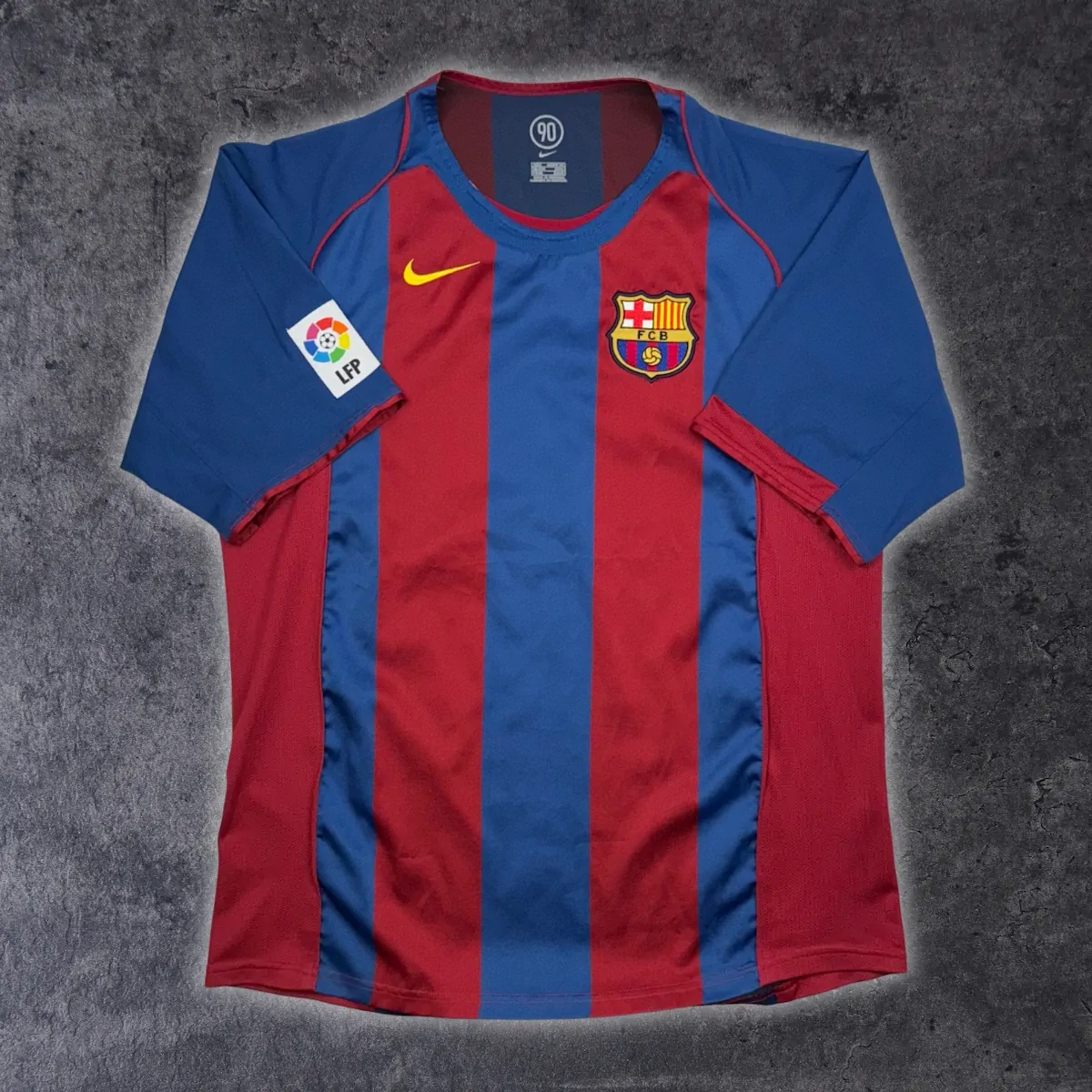 Note IFS : 9/10 – Très proche du parfait. Maillot Nike officiel du Barça, avec logo Nike et écusson brodés. Une pièce magnifique, qui vieillira à merveille si bien conservée. Le genre de maillot qui sent le beau jeu… et fait direct penser à Ronaldinho.