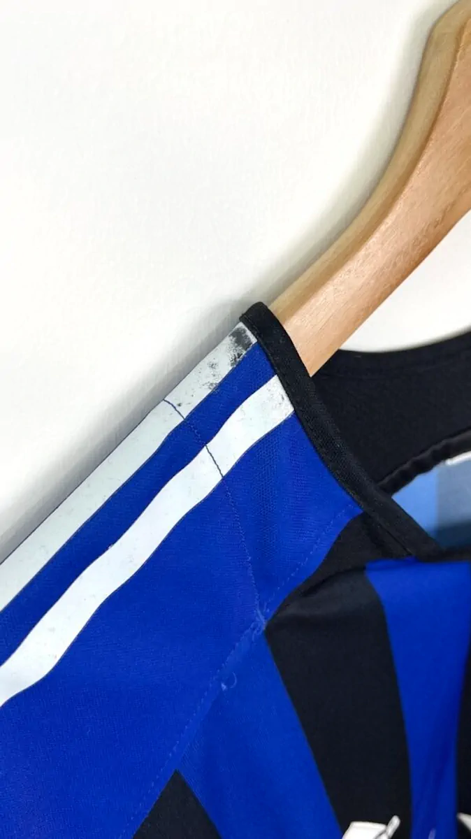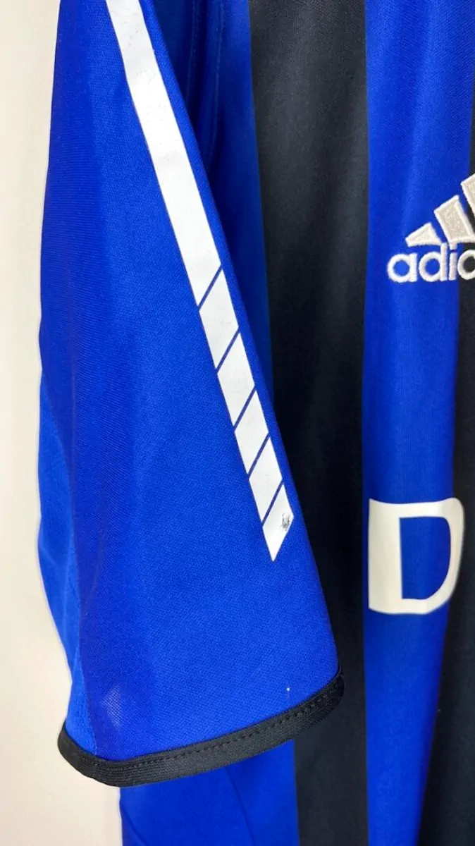 Note IFS : 8/10 – Très bon état général, étiquette coupée et bandes sur les épaules réputées fragiles un peu marquées (voir photos). Cette pépite vintage au sponsor Iconic Dexia est un classique de Jupiler Pro League ! Belle pièce pour tous supporters des “Blauw en Zwart” !