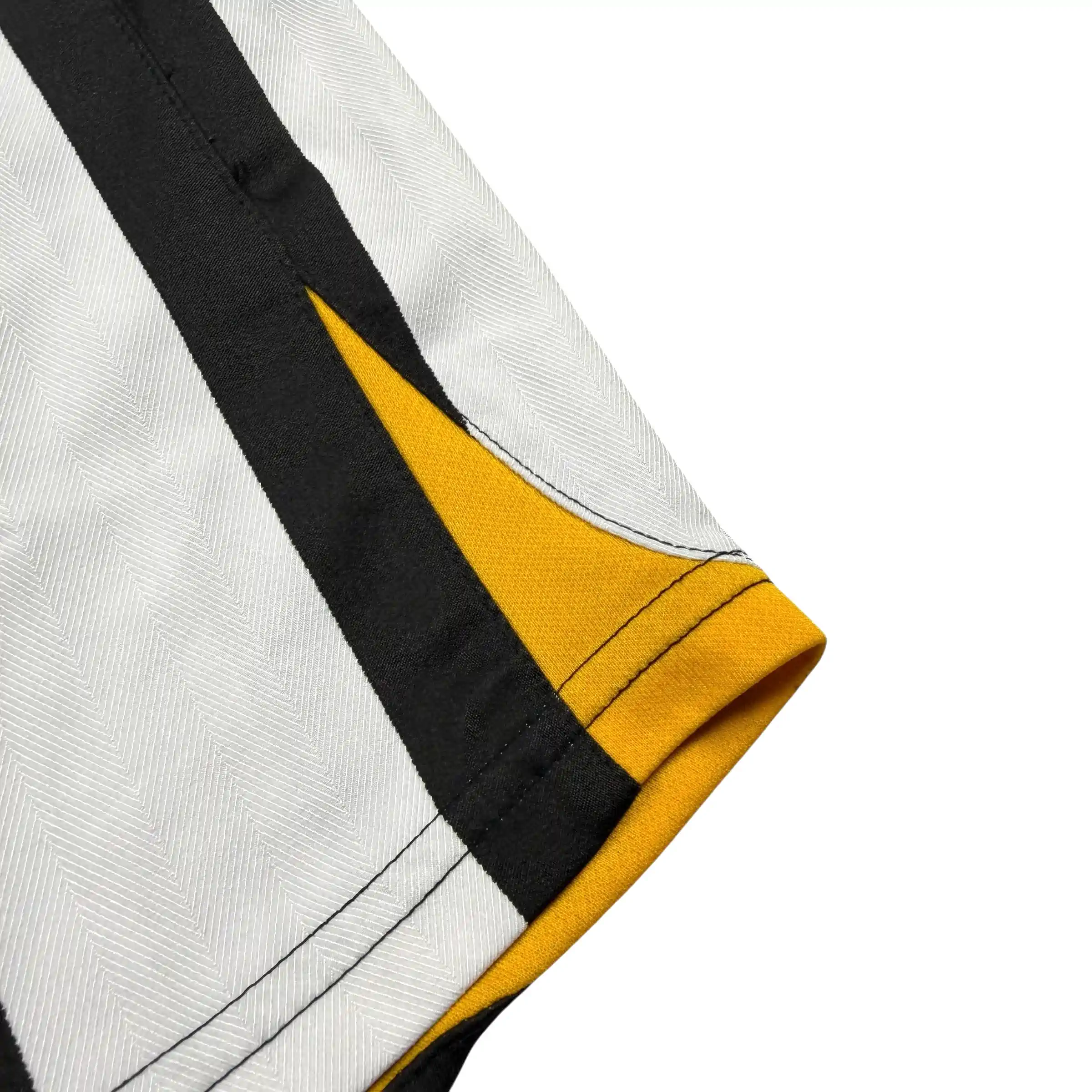 Note IFS : 9/10 – Incroyable maillot de la Juventus en excellent état, avec une mini trace sur le sponsor à signaler mais une conservation remarquable pour ce modèle, très rare de trouver le sponsor aussi propre. Il s’agit de la version Centenaire du premier Scudetto. La Juve en mode Total 90, forcément on valide !