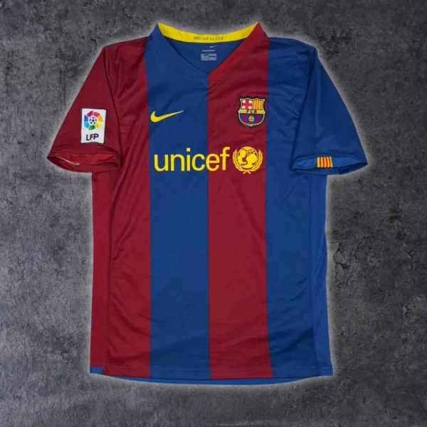 Sous Franck Rijkaard, le Barça termine 2ᵉ en Liga lors de la saison 2006-2007, marquée par l’apparition du logo UNICEF sur le maillot, sans but commercial. Messi devient titulaire aux côtés de Ronaldinho, auteur de 24 buts, et Eto’o, amorçant son ascension en tant que légende vivante du football.