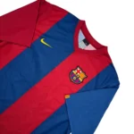 Note IFS : 10/10 – Rare maillot du Barça en version supporter (Basic Version), dans un état parfait. Étiquette différente dans la nuque et textile plus épais que les versions vendues 100€ en boutique à l’époque. Un modèle qui sent bon l’époque Ronaldinho.
