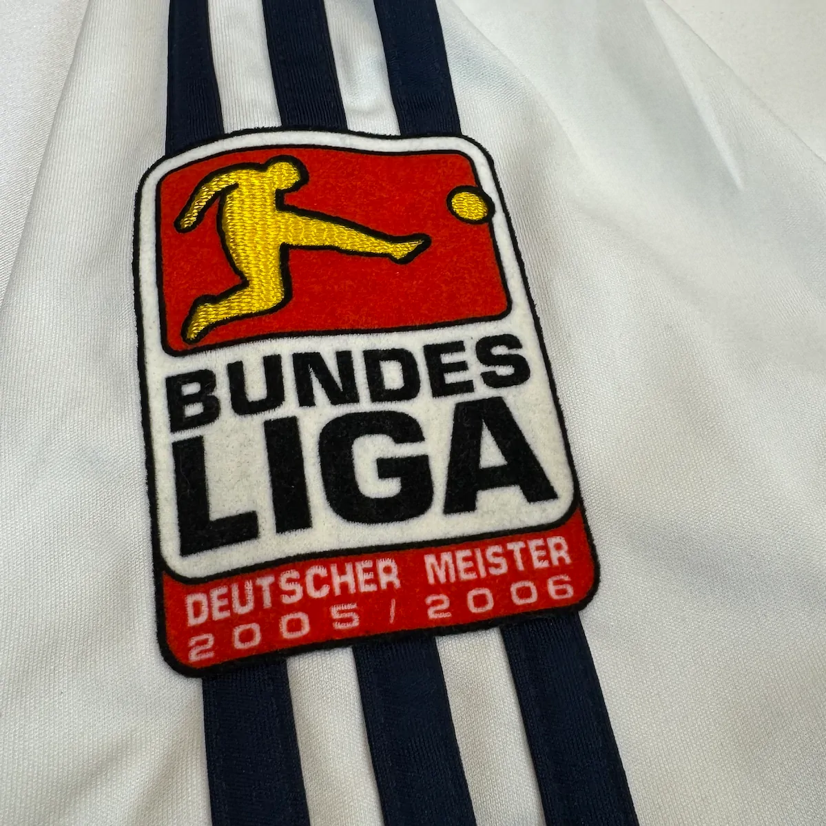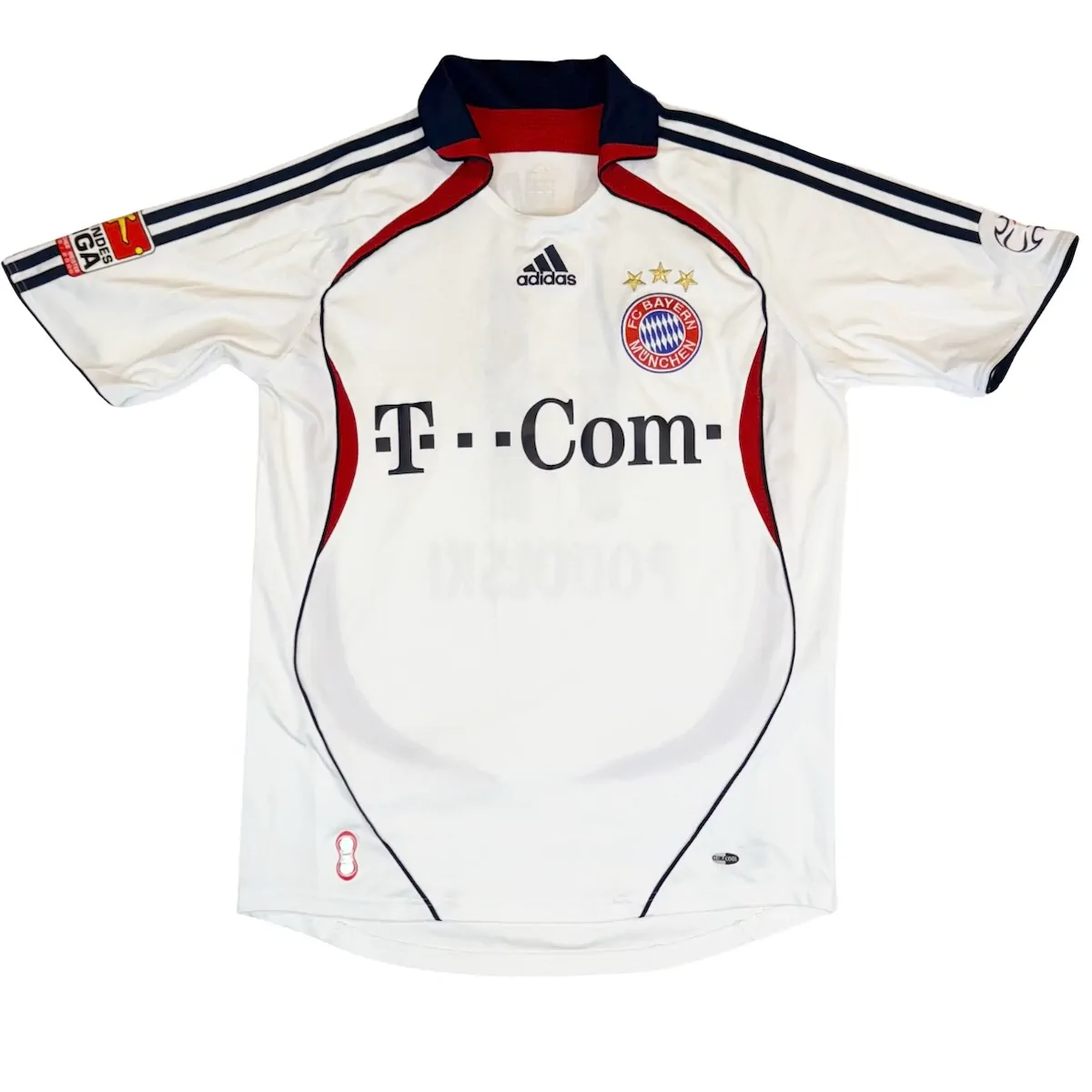 Note IFS : 7/10 – Bon état général, le flocage a déteint sur le maillot et est donc assez abîmé. Bien que le sponsor soit parfait tout comme le maillot en lui-même, nous avons ajusté la note à 7/10 uniquement par rapport au flocage et l’aspect général (voir photos). Présence de l’Iconic sponsor T-Mobile de l’époque qui nous rappelle les grands joueurs passés par Munich ! Le maillot reste collector mais beaucoup plus accessible qu’un 10/10 du même calibre !