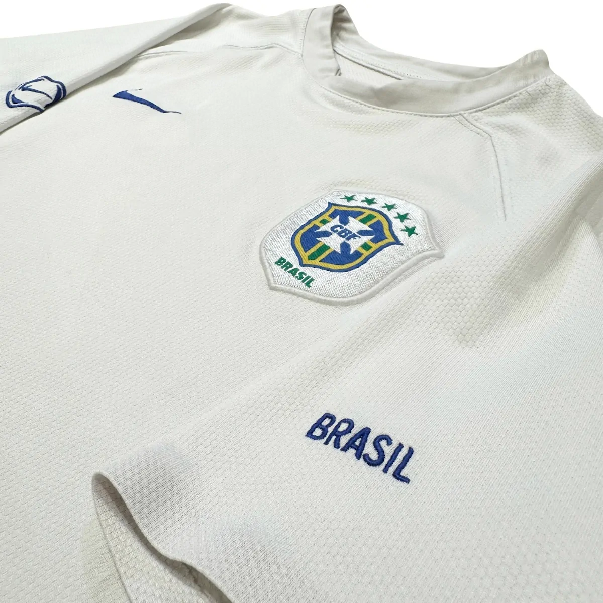 Note IFS : 9/10 – Excellente condition pour ce maillot d’entrainement du Brésil, le blanc à un peu perdu de son éclat, mais, l’ensemble est hyper bien conservé pour l’âge de cette pépite assez rare. Nike et la Seleção, une grande histoire d’amour ! Époque Ronaldinho, R9…