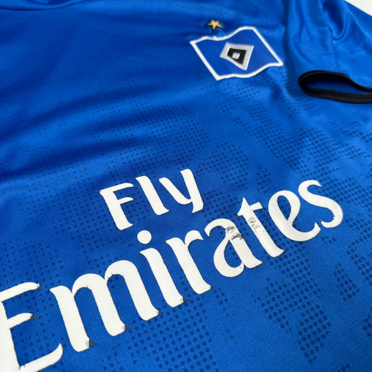 Note IFS : 7/10 – Maillot rétro d’Hambourg avec un vrai vécu, sponsor bien marqué et logos Puma fatigués, parfait pour l’entraînement ou pour ceux qui veulent une pièce vintage sans se prendre la tête, le tout avec ce charme brut propre aux maillots anciens du HSV.